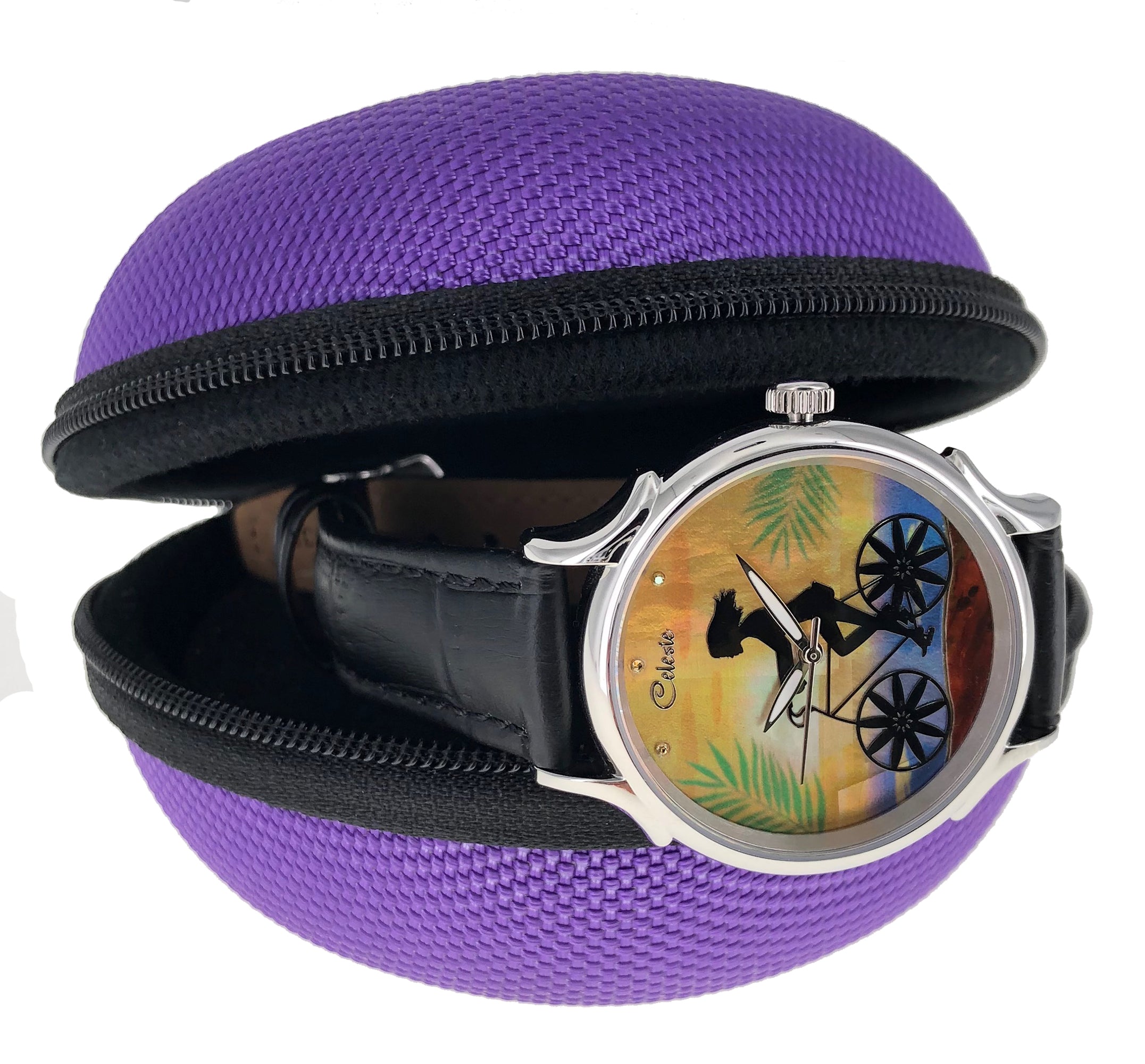 - Every Celeste watch comes with its very own travel friendly case! Perfect for storage and shipping, your watch is snuggly nestled in plush felt, protected from drops, knocks, and bangs.