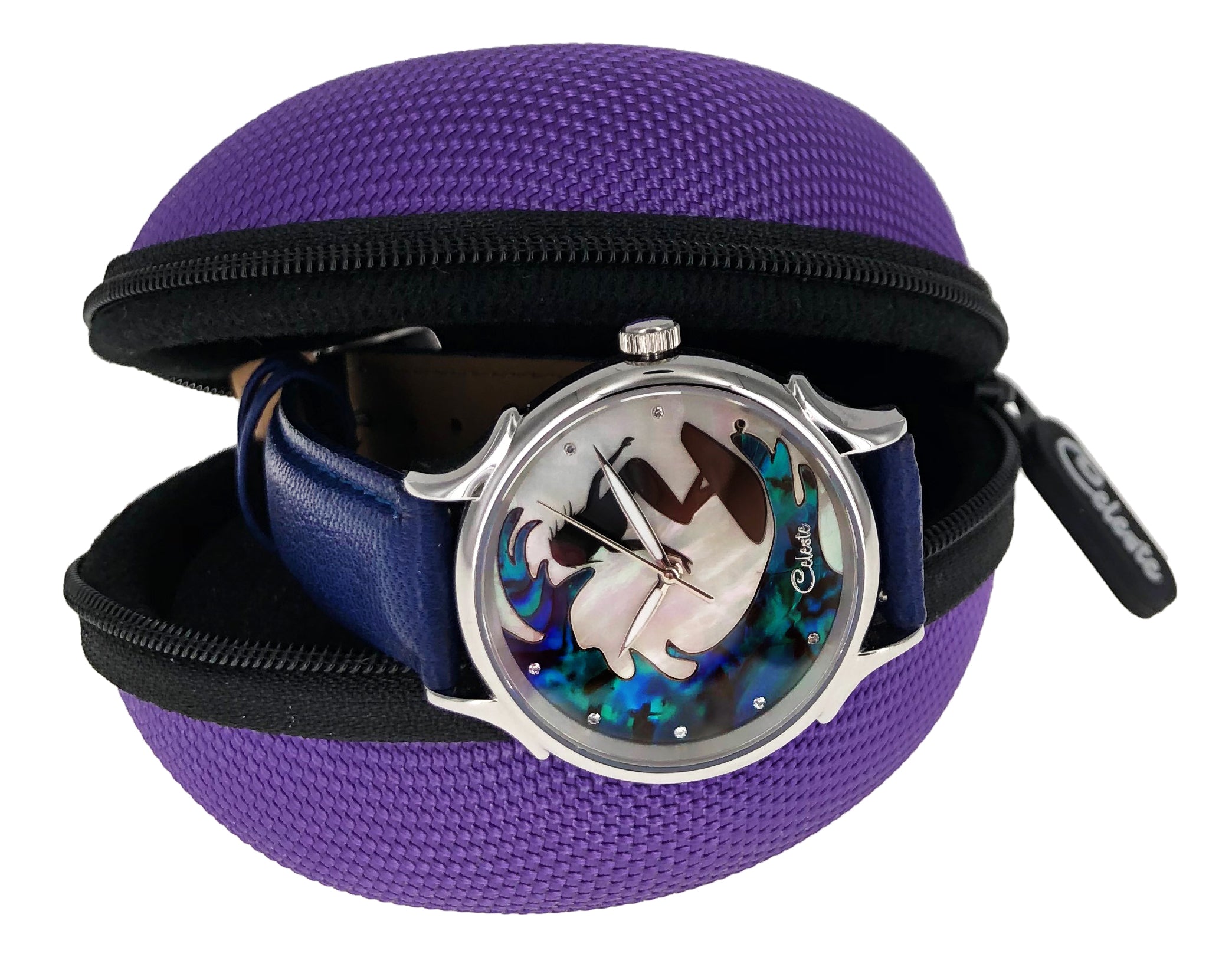 - Every Celeste watch comes with its very own travel friendly case! Perfect for storage and shipping, your watch is snuggly nestled in plush felt, protected from drops, knocks, and bangs.