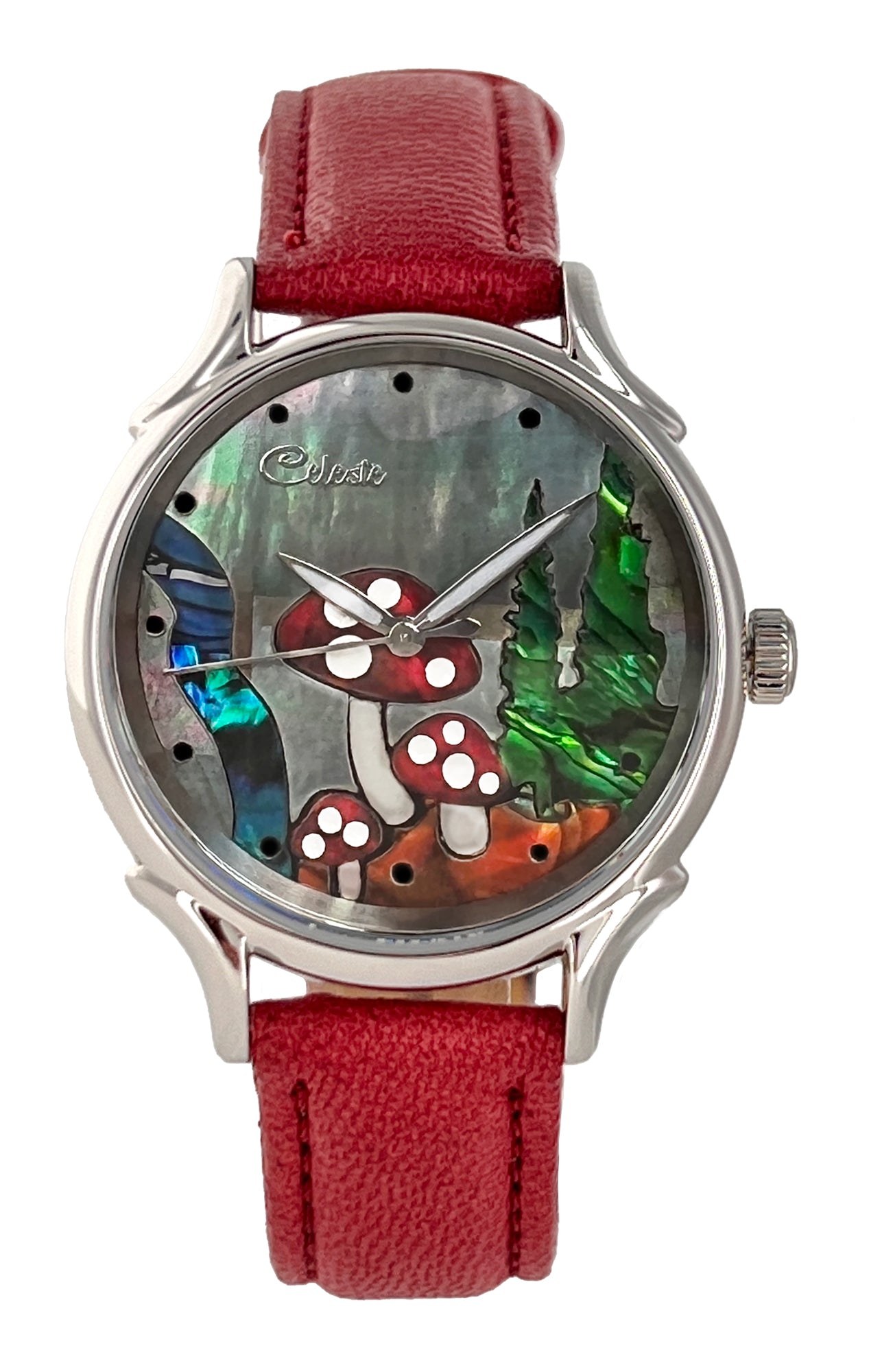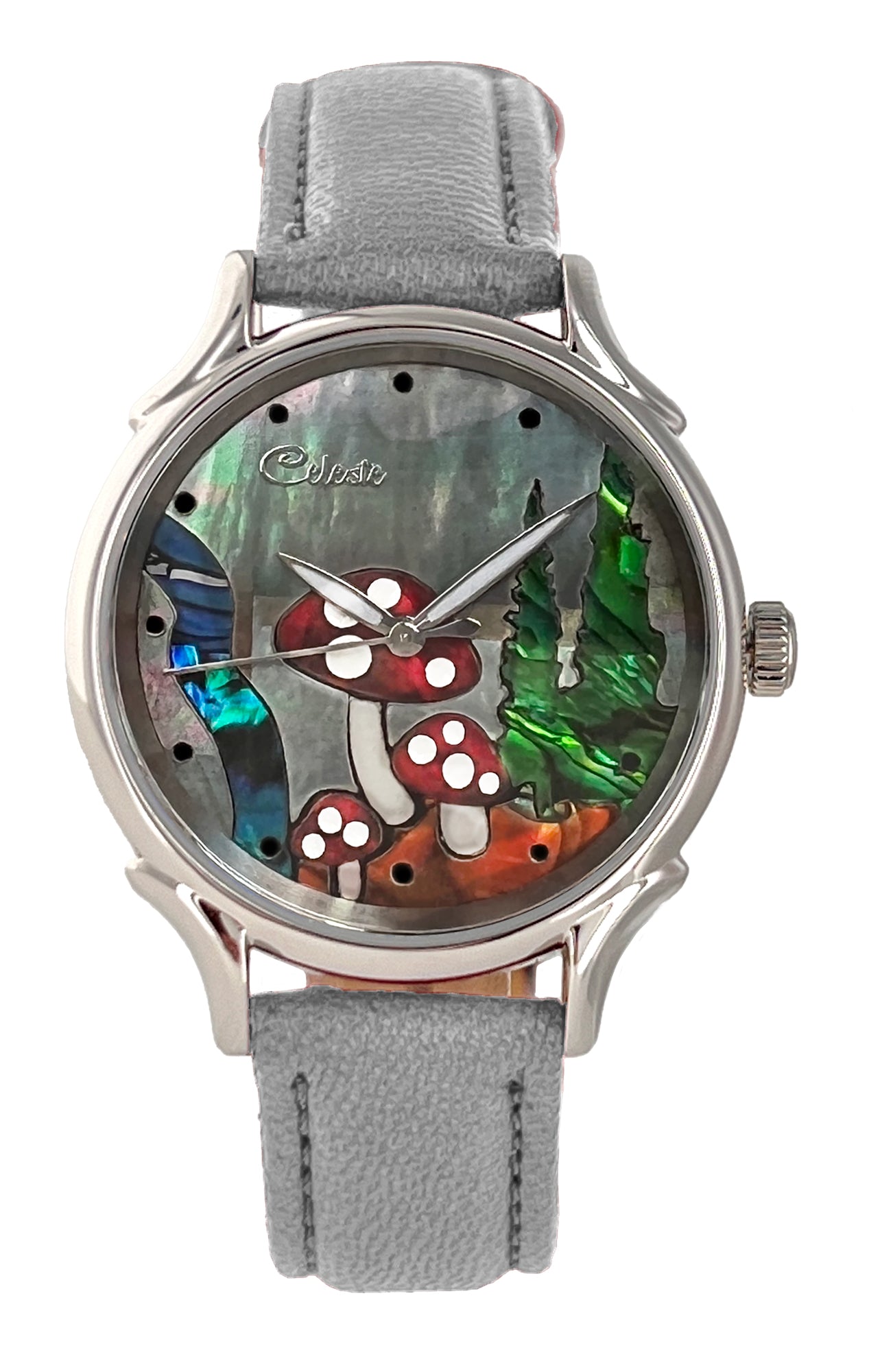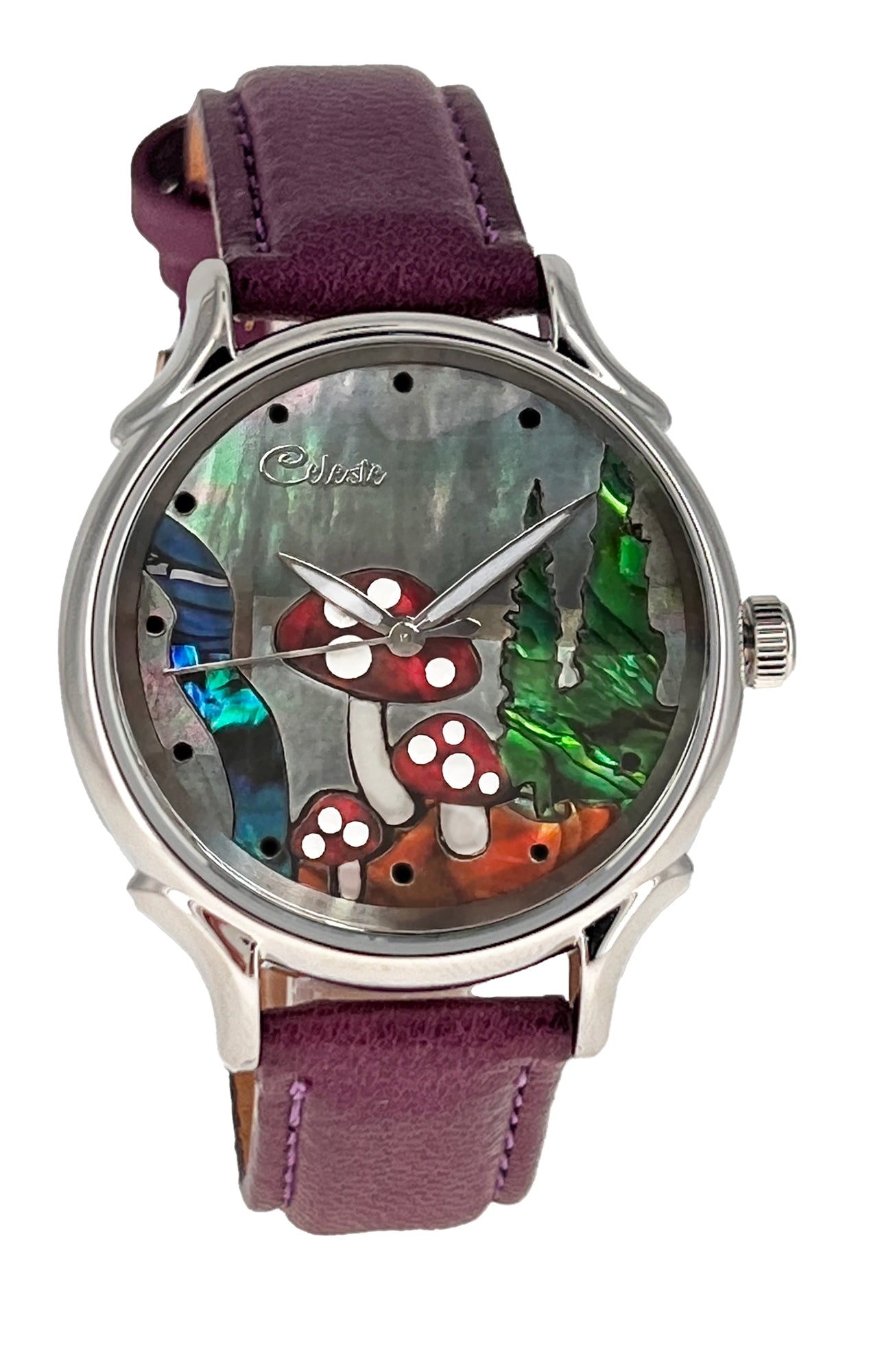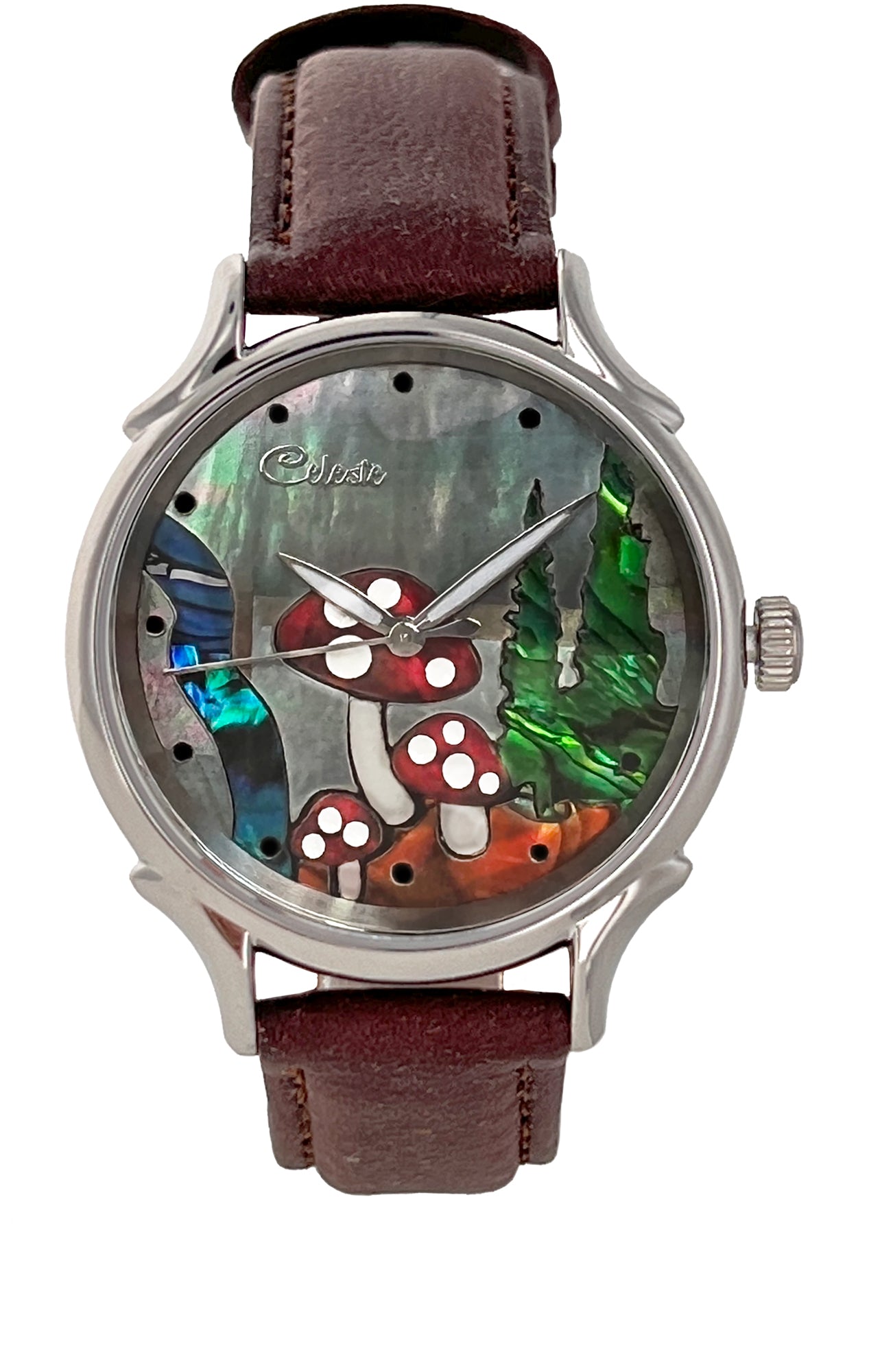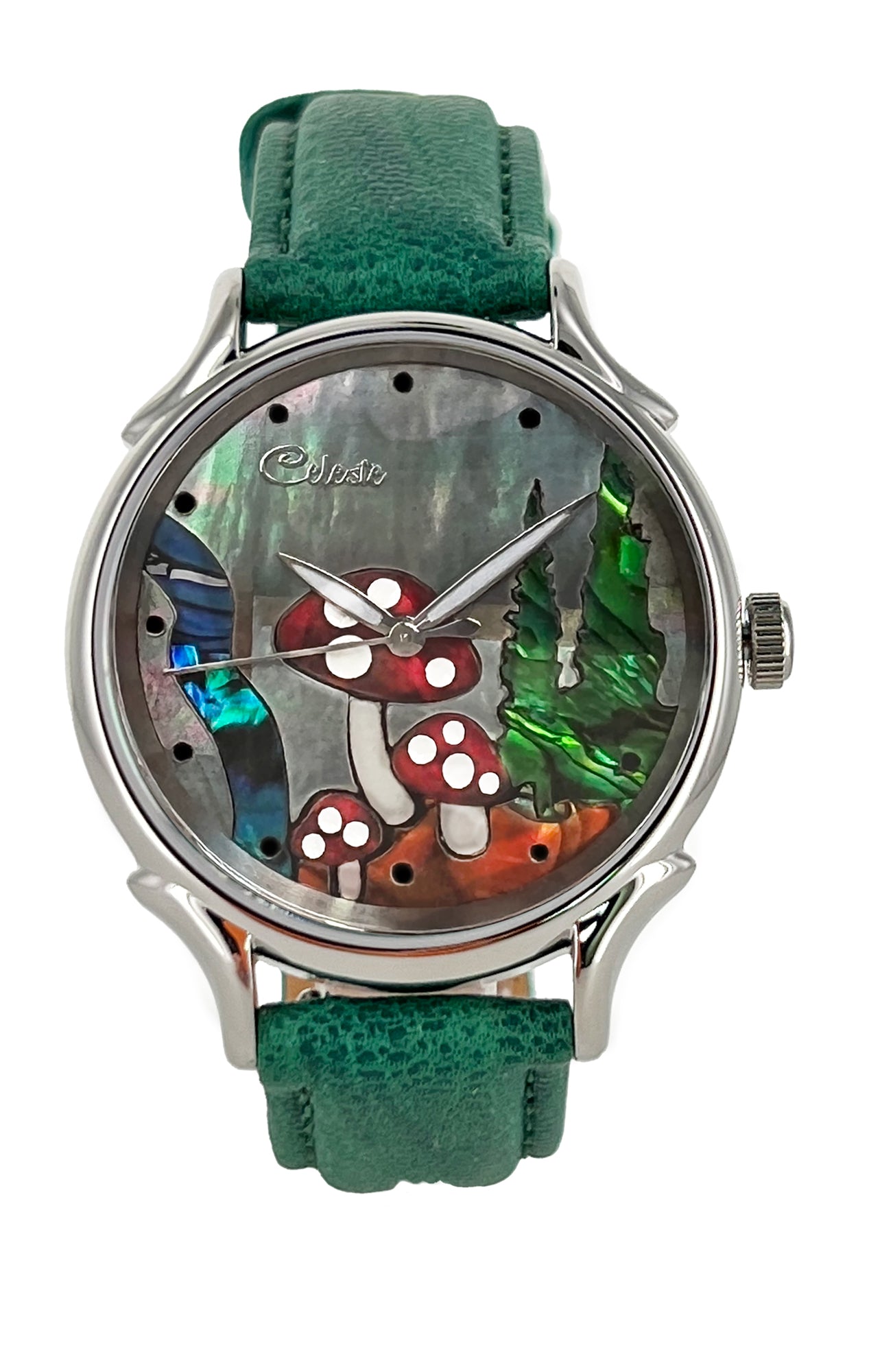 - Every watch dial is handcrafted in our studio in Oregon. Dials are primarily abalone shell and/or Mother of Pearl inlays but many also contain wood and metal pieces.
