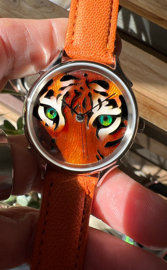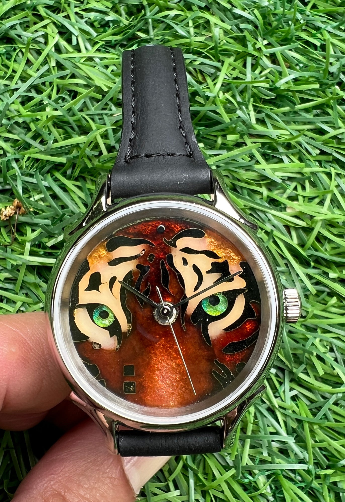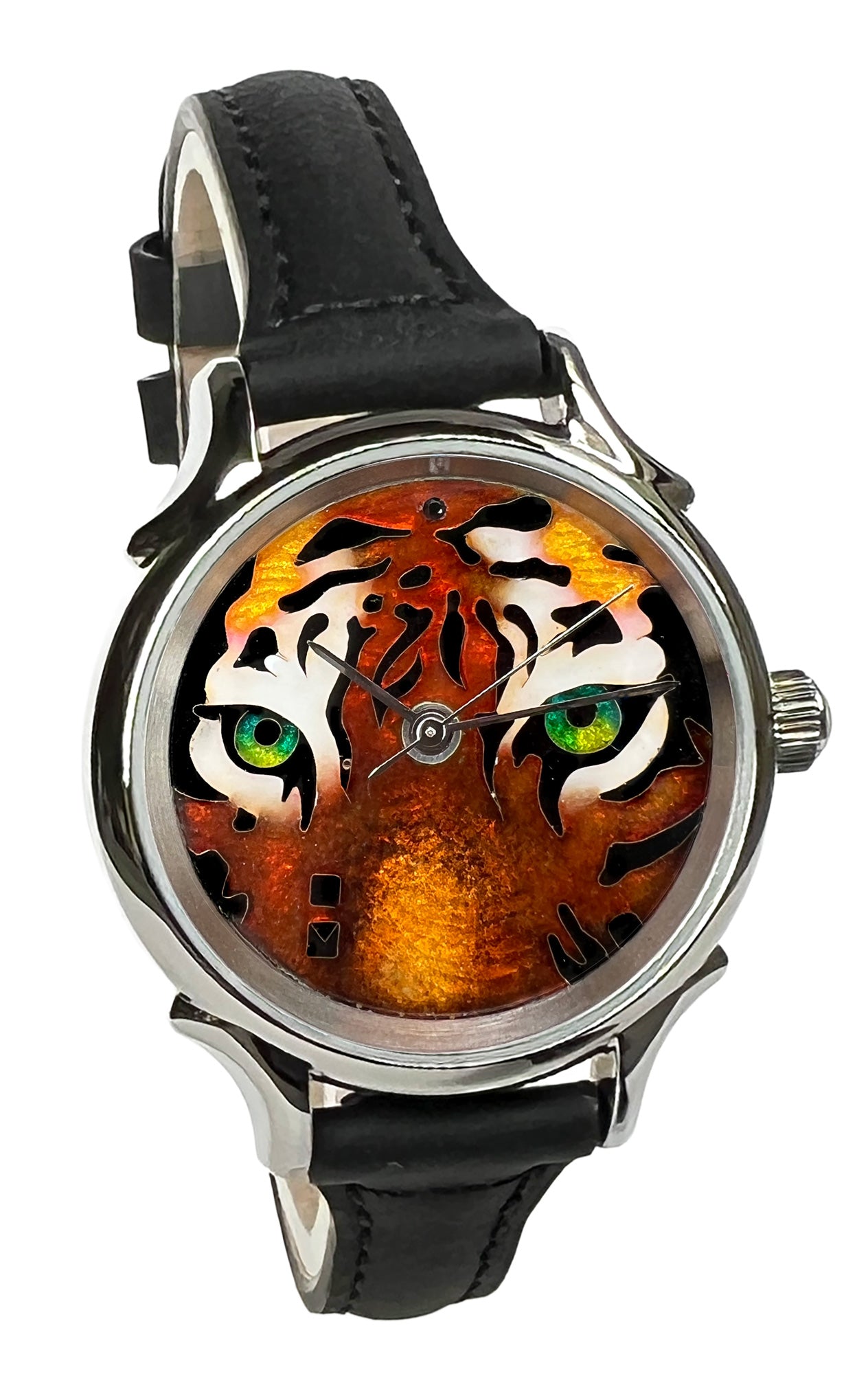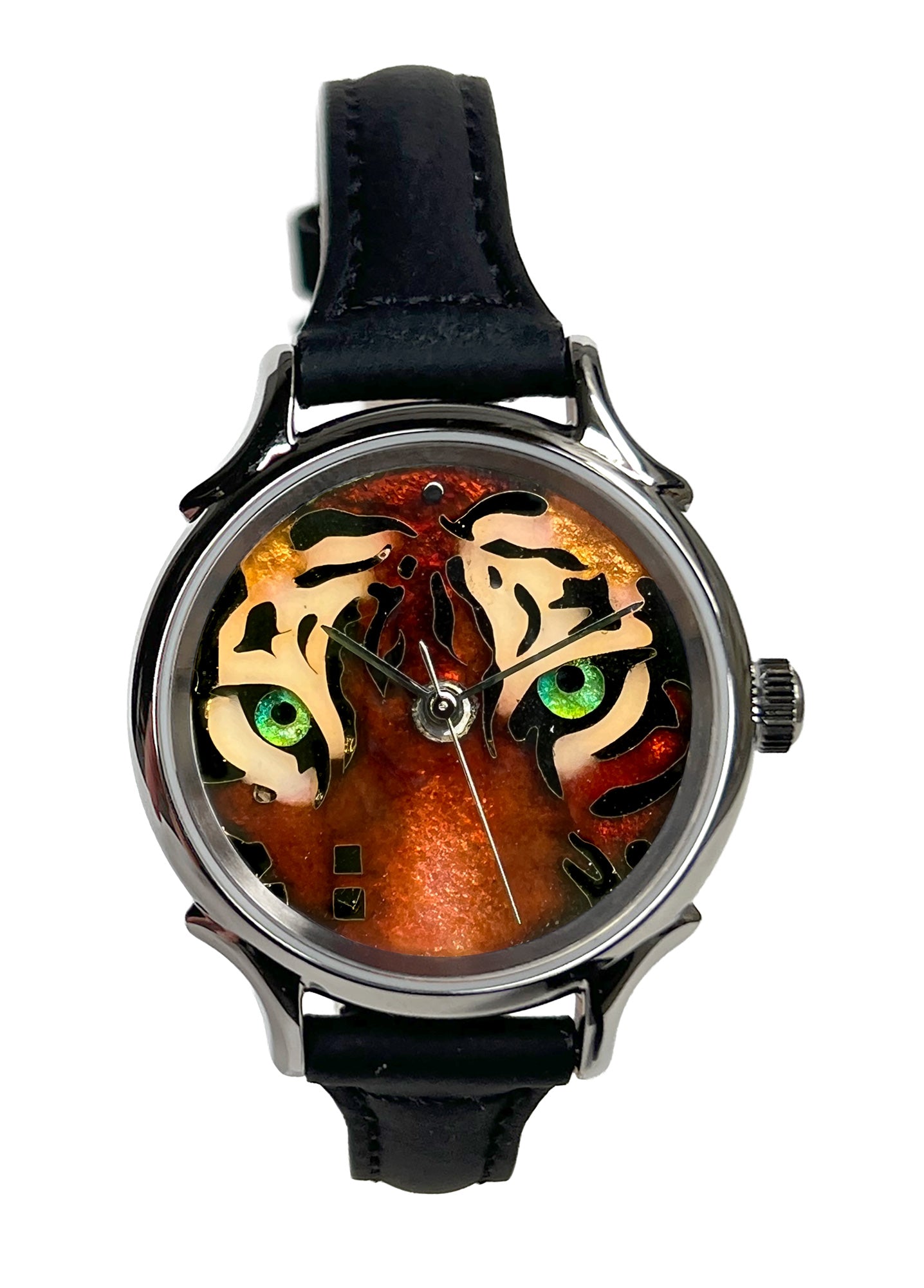 32mm and 36mm Tiger Cloisonné watch faces designed by Merry-Lee, completely hand made by Miranda Tsertsvadze.