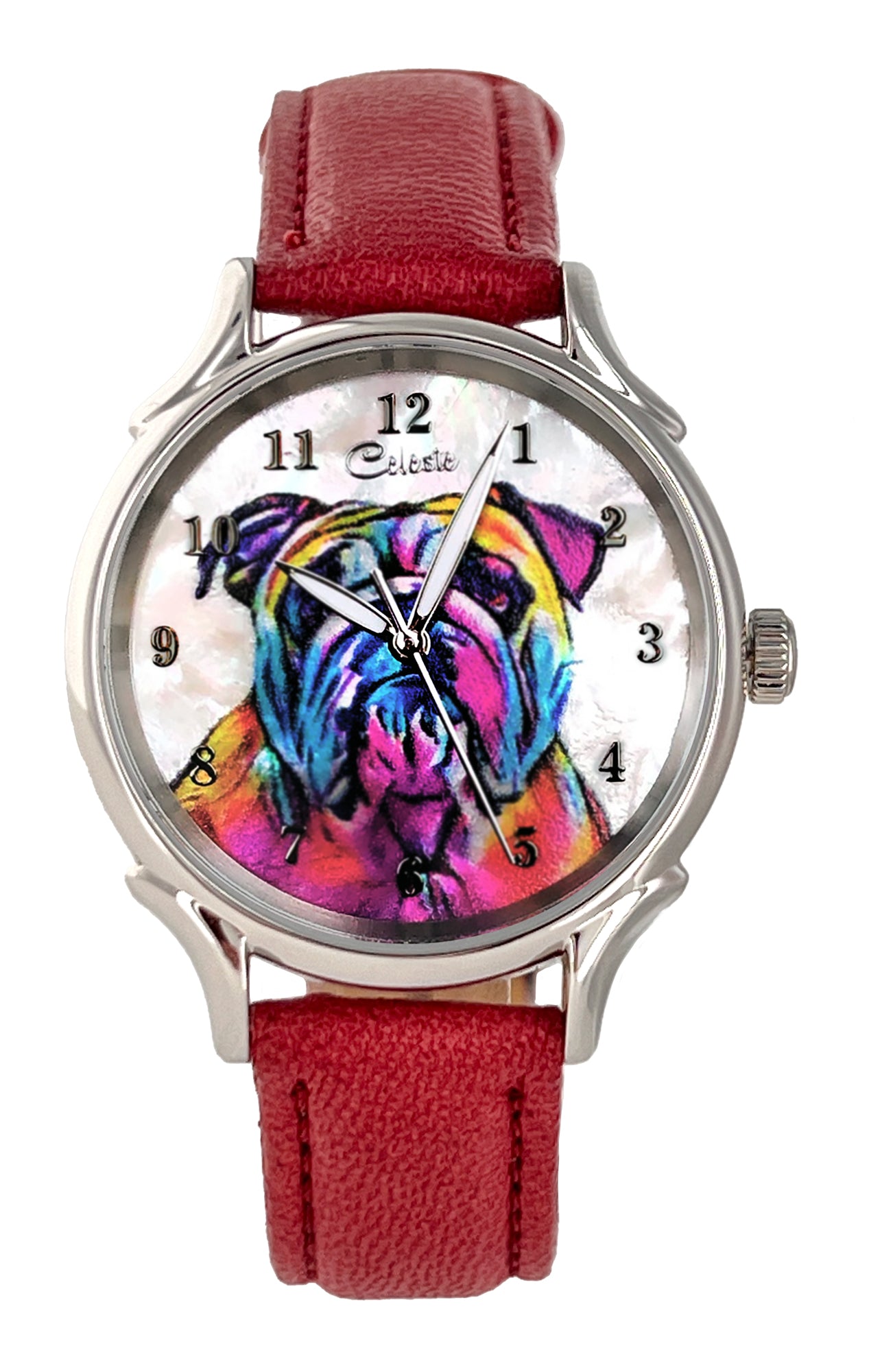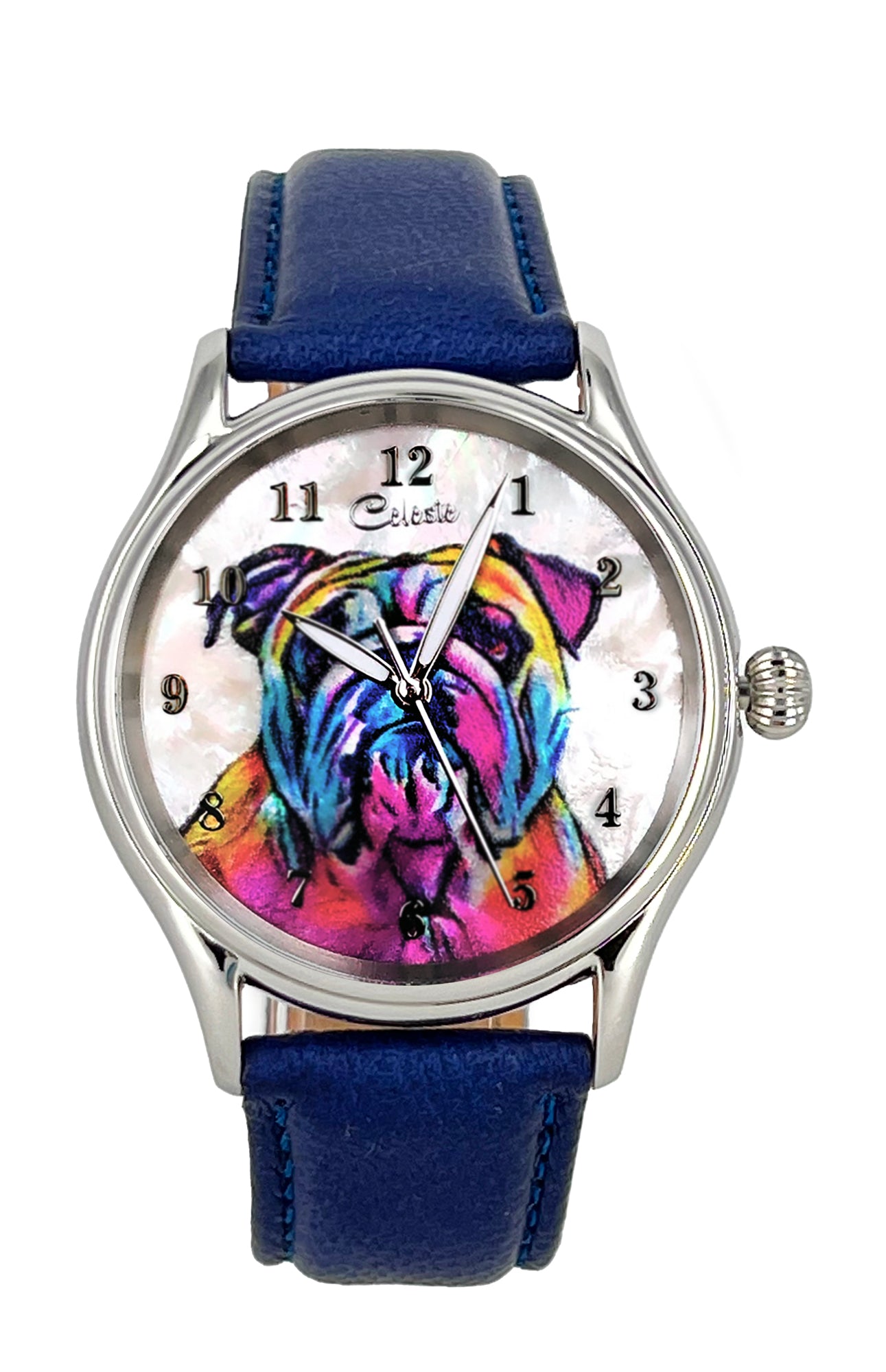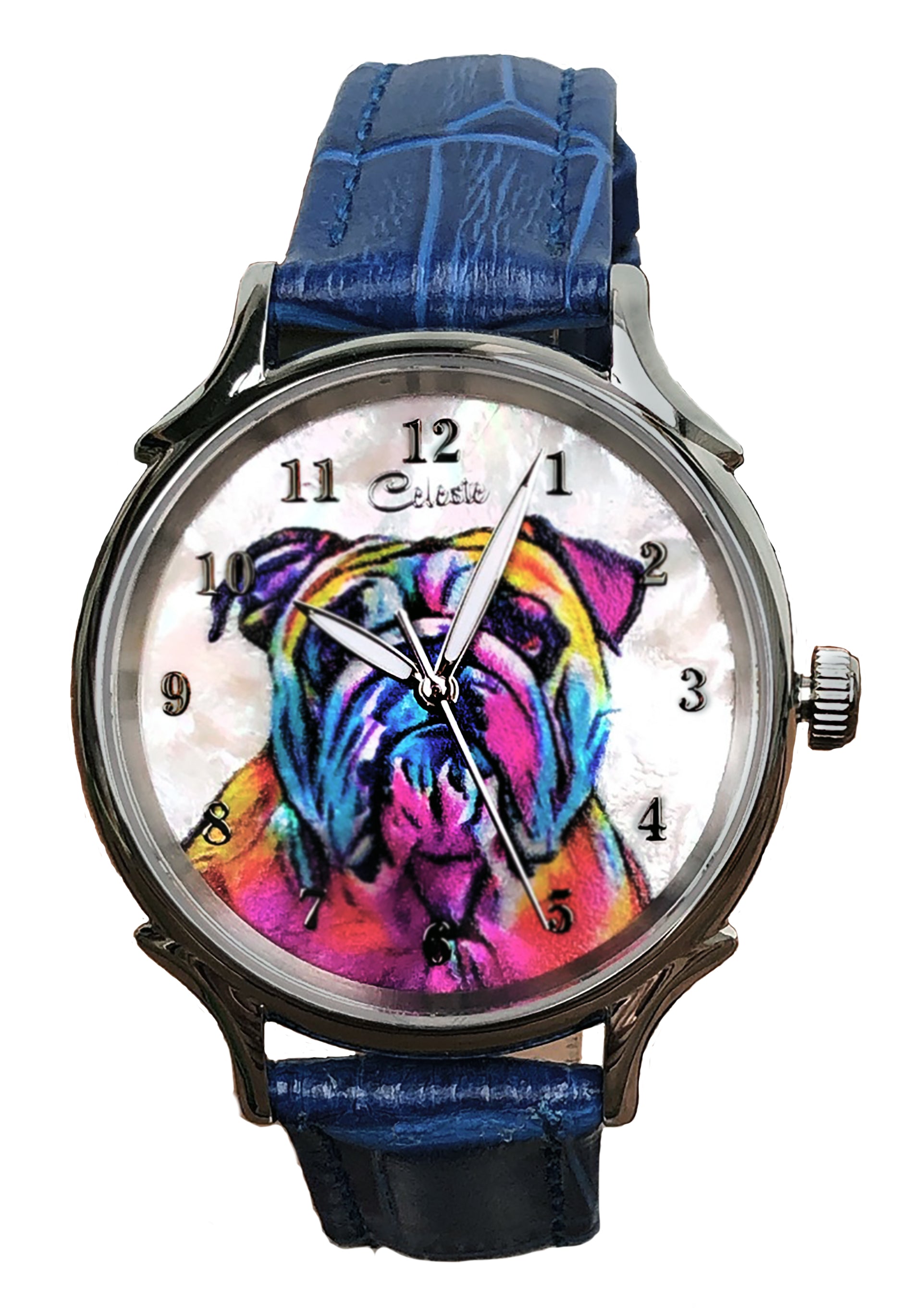 - Many colorful leather strap colors are available for every Celeste watch. From electric blue, purple, and red to turquoise, pumpkin, and grey there is a color for everyone. Metal bands are also available for the same price.