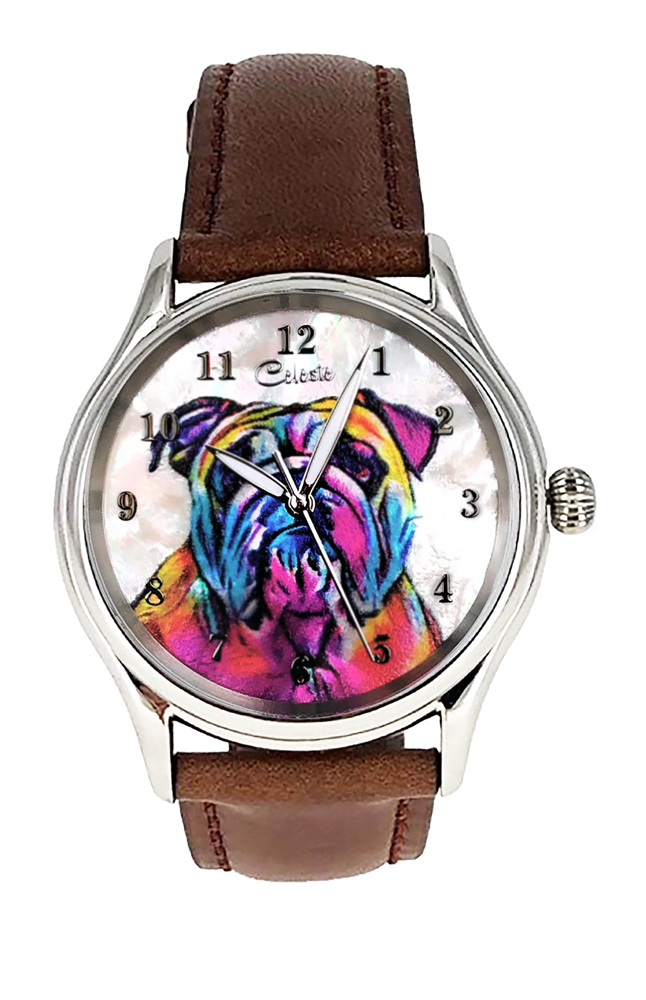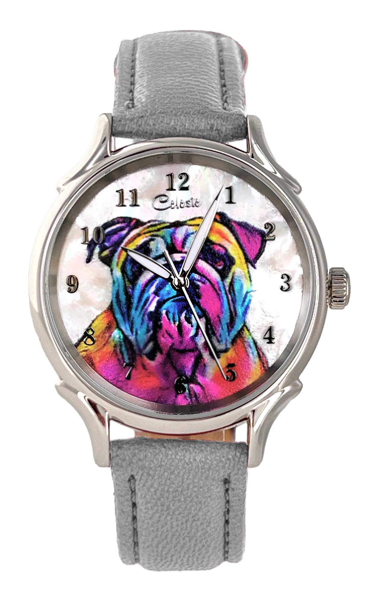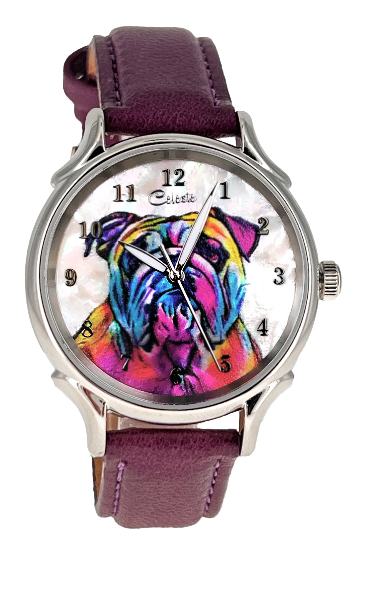 - Many colorful leather strap colors are available for every Celeste watch. From electric blue, purple, and red to turquoise, pumpkin, and grey there is a color for everyone. Metal bands are also available for the same price.