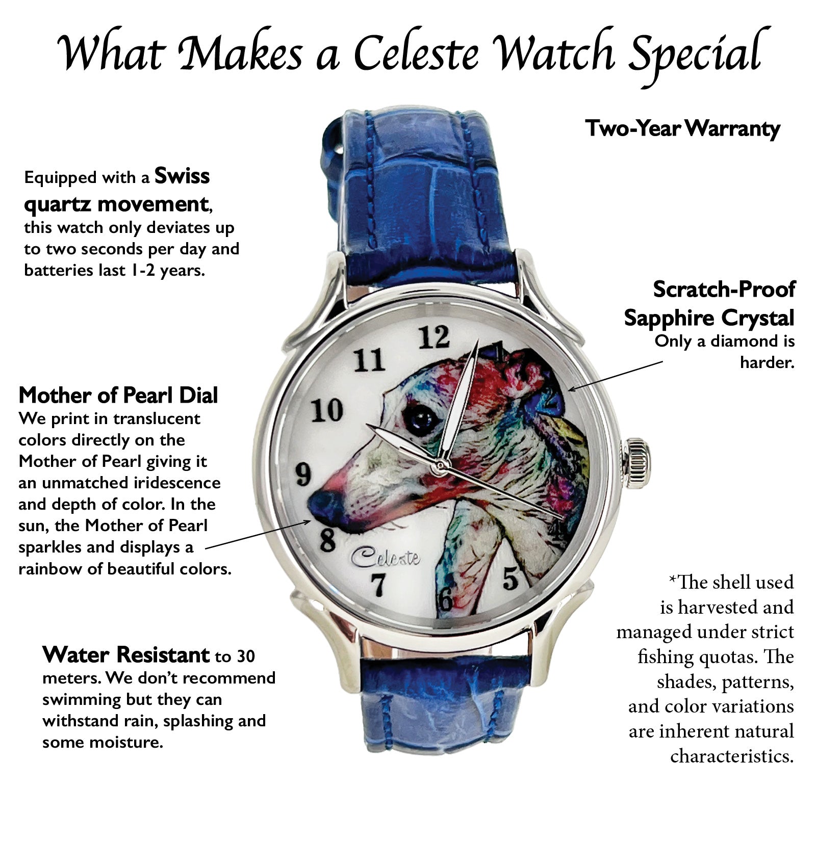 If you are unsatisfied with the performance of your watch, we'll make it right. Whether you made the purchase or received your watch as a gift, it's Celeste's guarantee that your watch will maintain its beauty and precision.