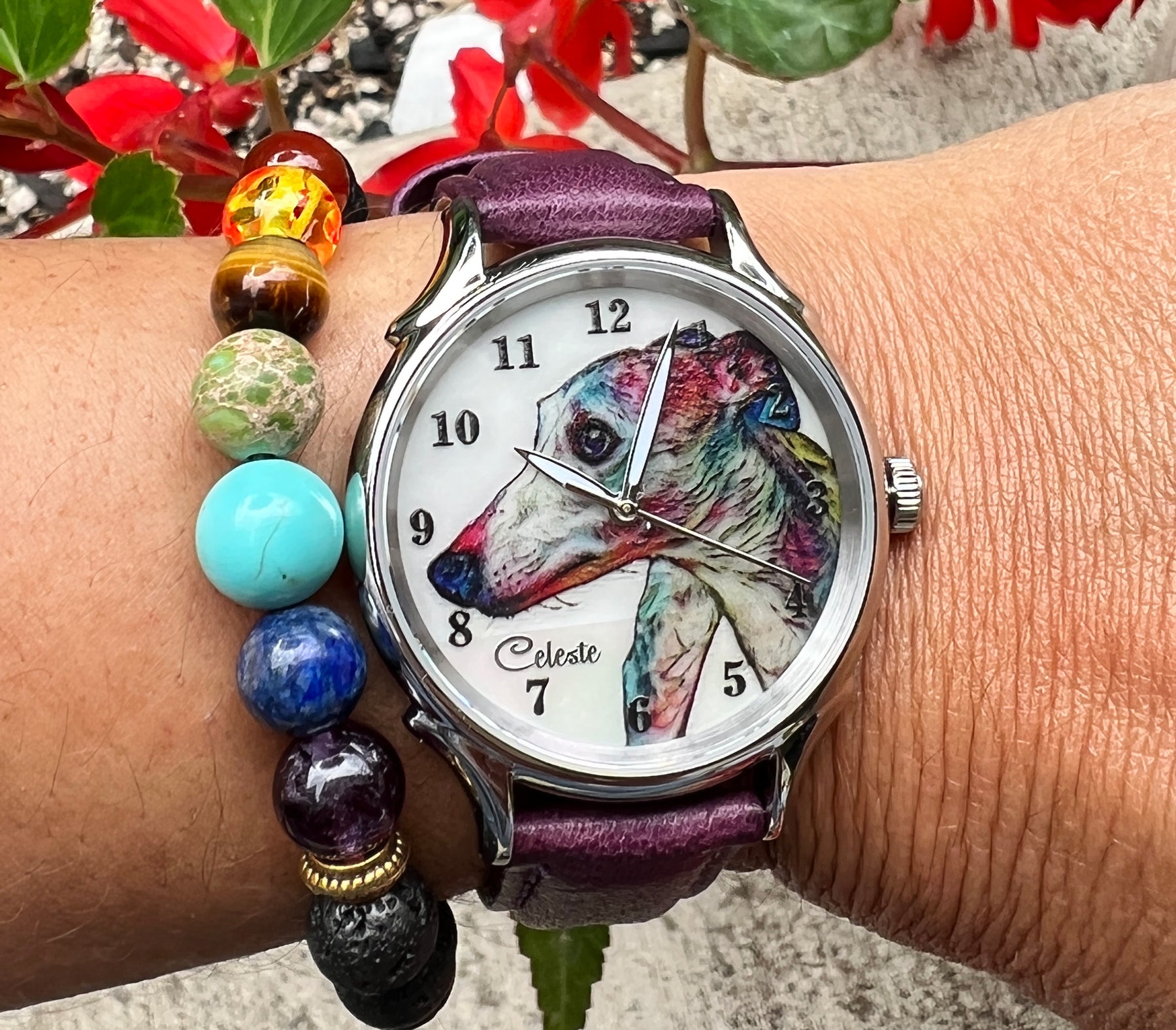 Take your greyhound everywhere! The bond we have with our pets is more important than ever. They give unconditional love and accept you for who you are. What could be better than taking them with you everywhere, everyday, and smiling at your wrist 500 times per day? Our pets have amazing power and thinking about them or being with them is so heartwarming.