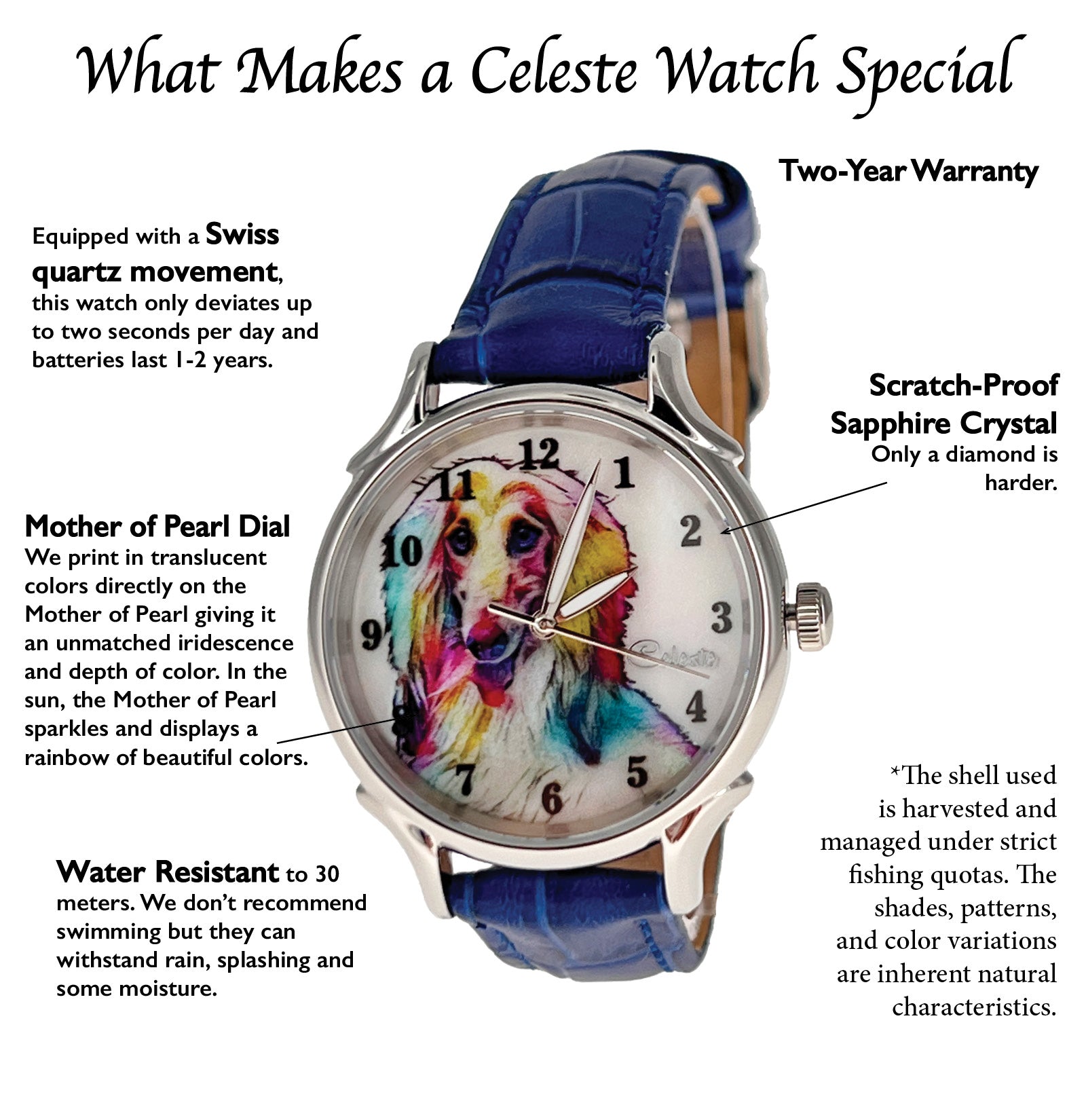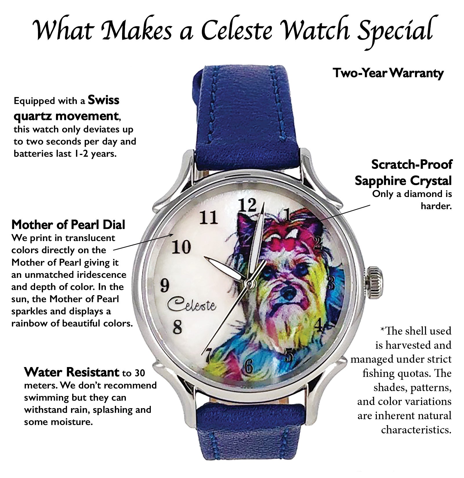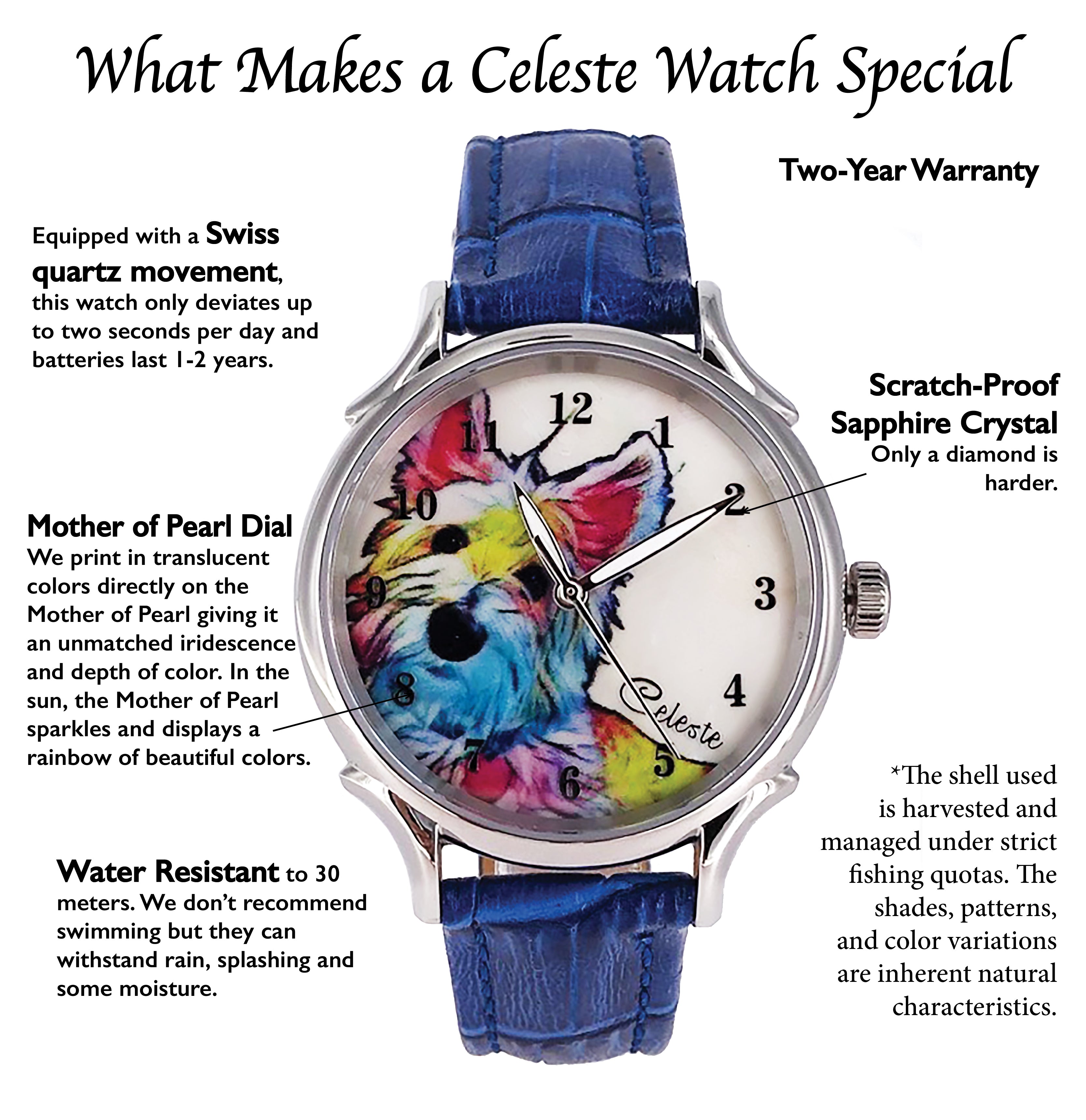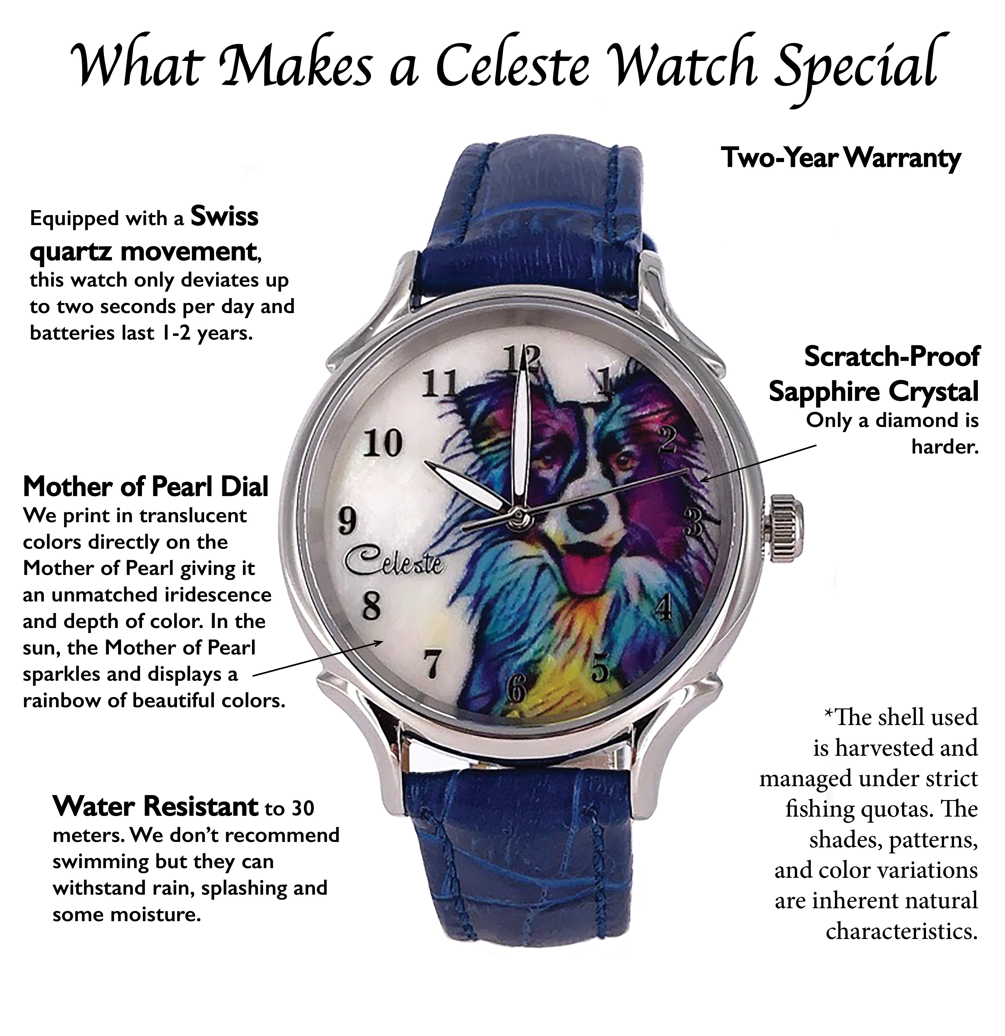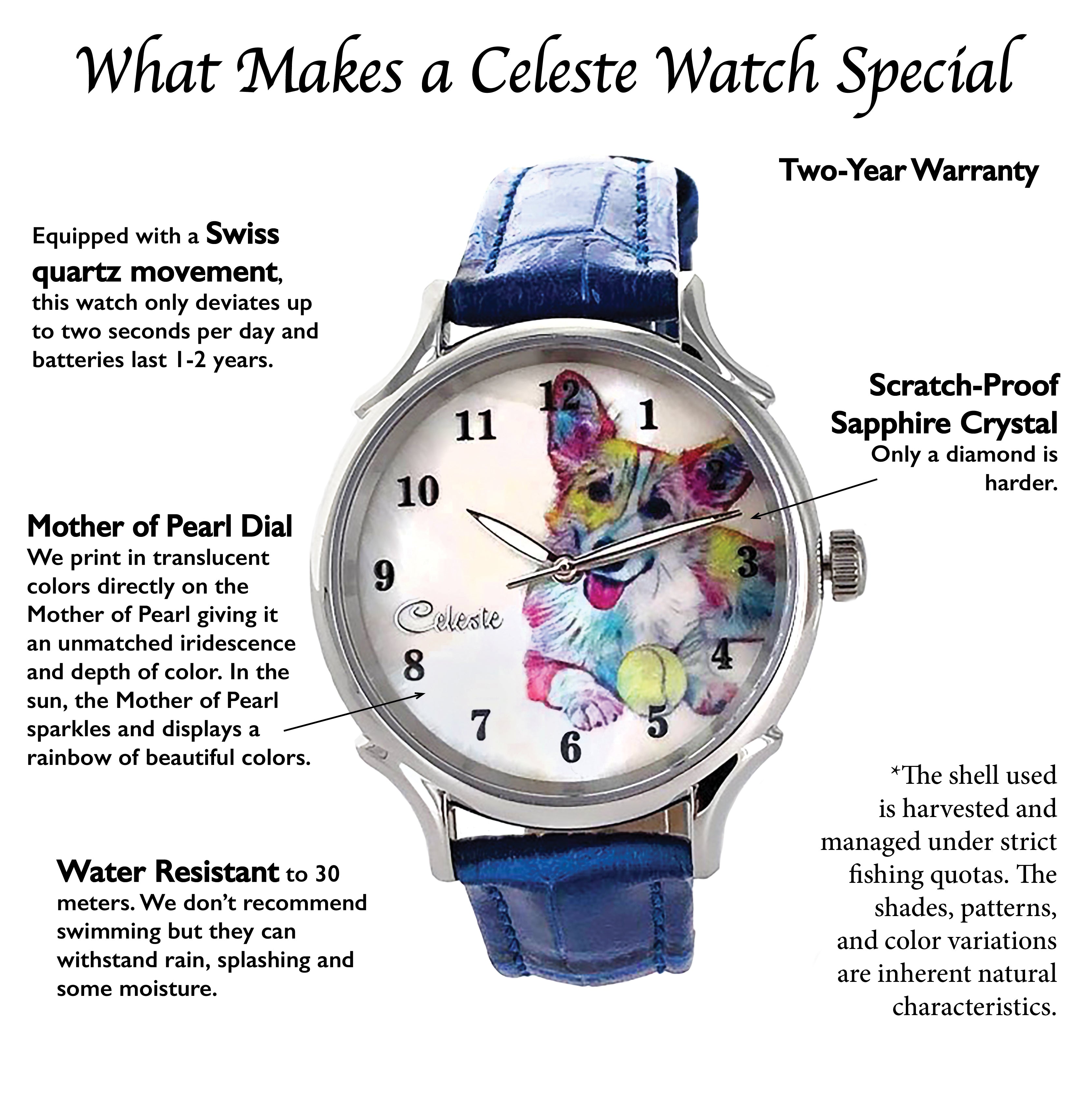 Celeste watches are designed to reflect the joys found in life and the breathtaking wonders of nature. These watches are our contribution to making a better world, a world filled with more color, beauty and goodness.