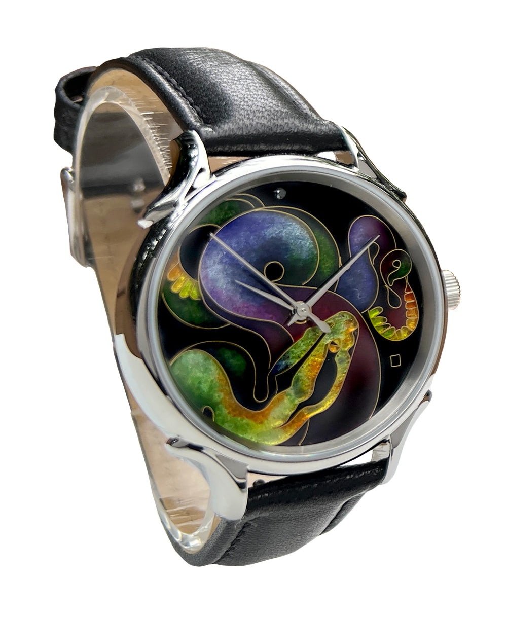 Cloisonné Snow Leopard by Merry-Lee Rae - 38mm Swiss Automatic