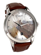 If you want a timepiece that is unlike any other, keep reading about this unique, head-turning automatic showpiece. The Canyon Collection is limited to only six watches and within those six, each dial is unique and one-of-a-kind. Using iridescent browns, bronzes, ivories, and silvers, the abalone shell dial is pieced together to resemble the wondrous canyons that make the Grand Canyon a Wonder of the World.