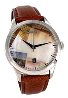If you want a timepiece that is unlike any other, keep reading about this unique, head-turning automatic showpiece. The Canyon Collection is limited to only six watches and within those six, each dial is unique and one-of-a-kind. Using iridescent browns, bronzes, ivories, and silvers, the abalone shell dial is pieced together to resemble the wondrous canyons that make the Grand Canyon a Wonder of the World.