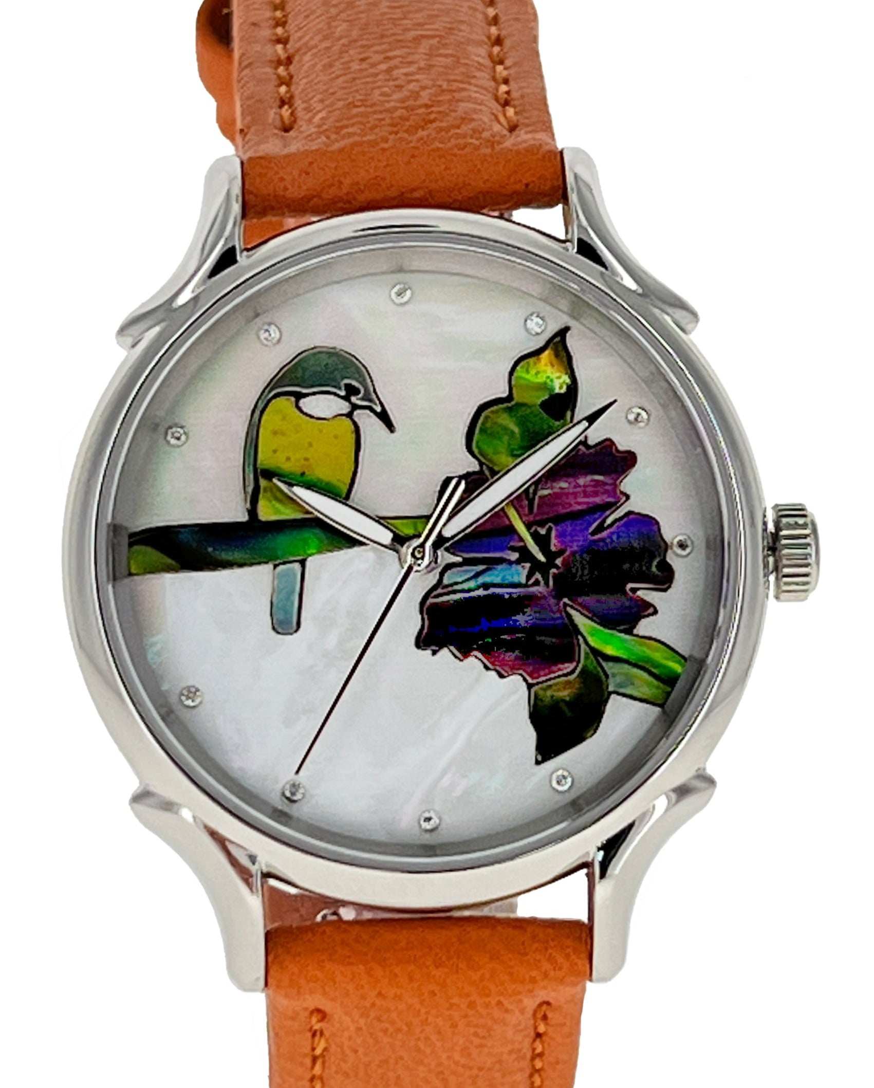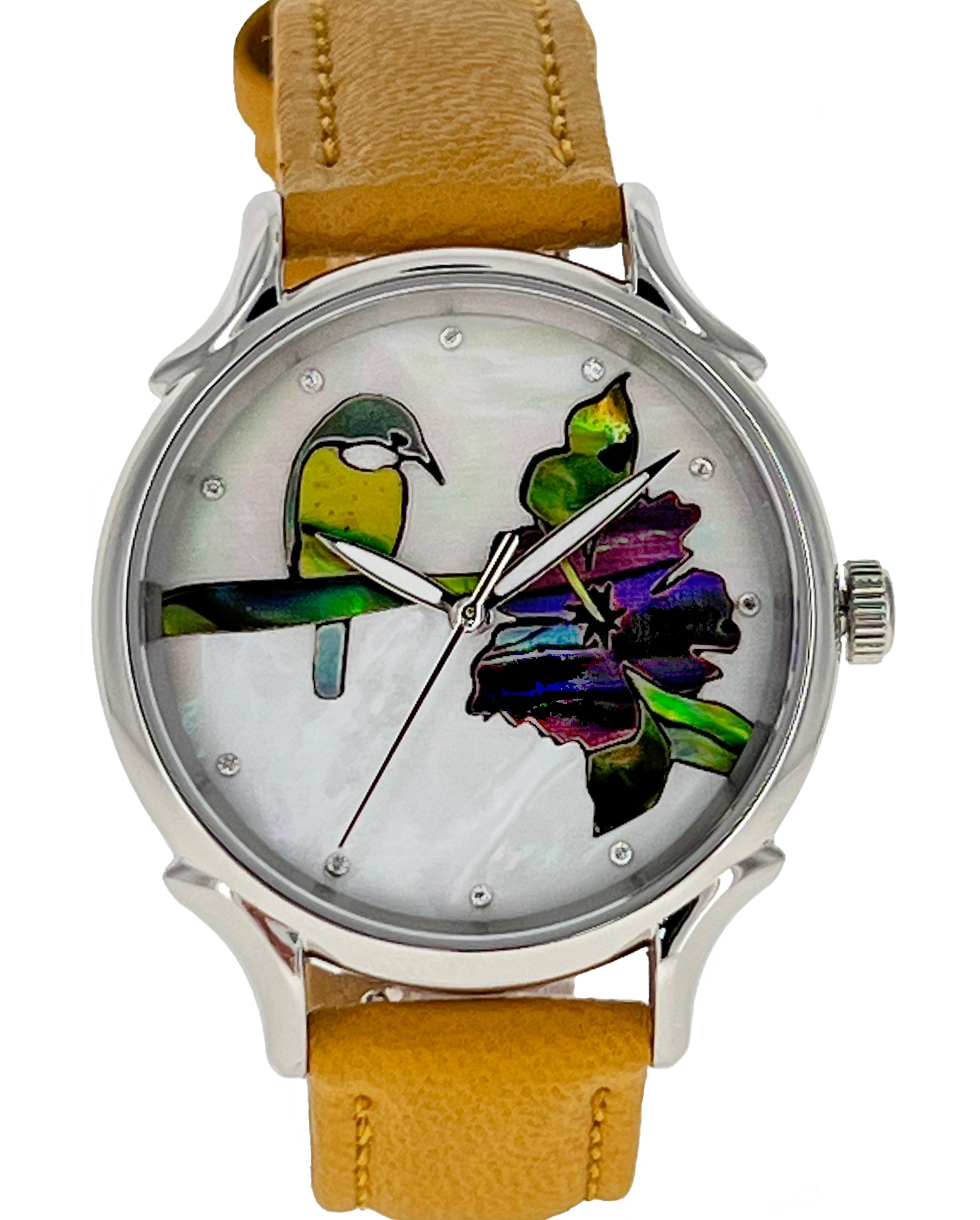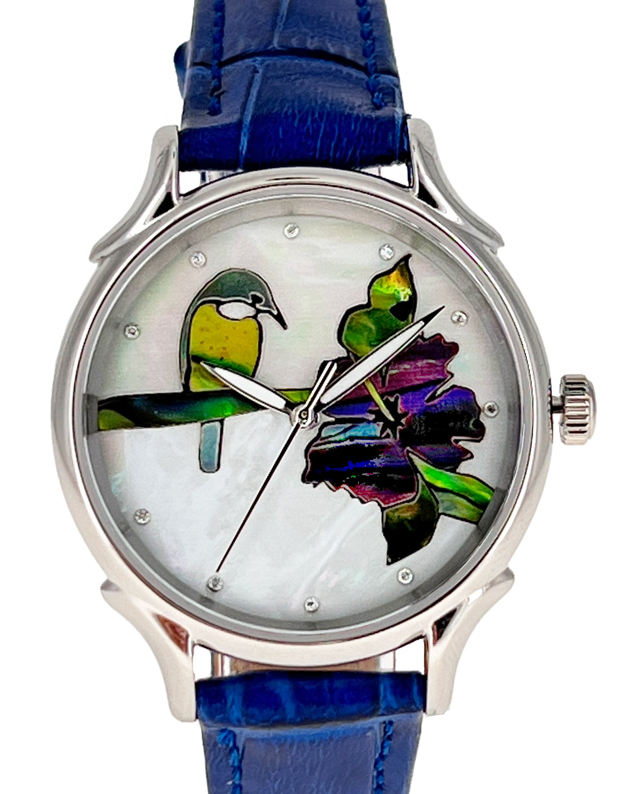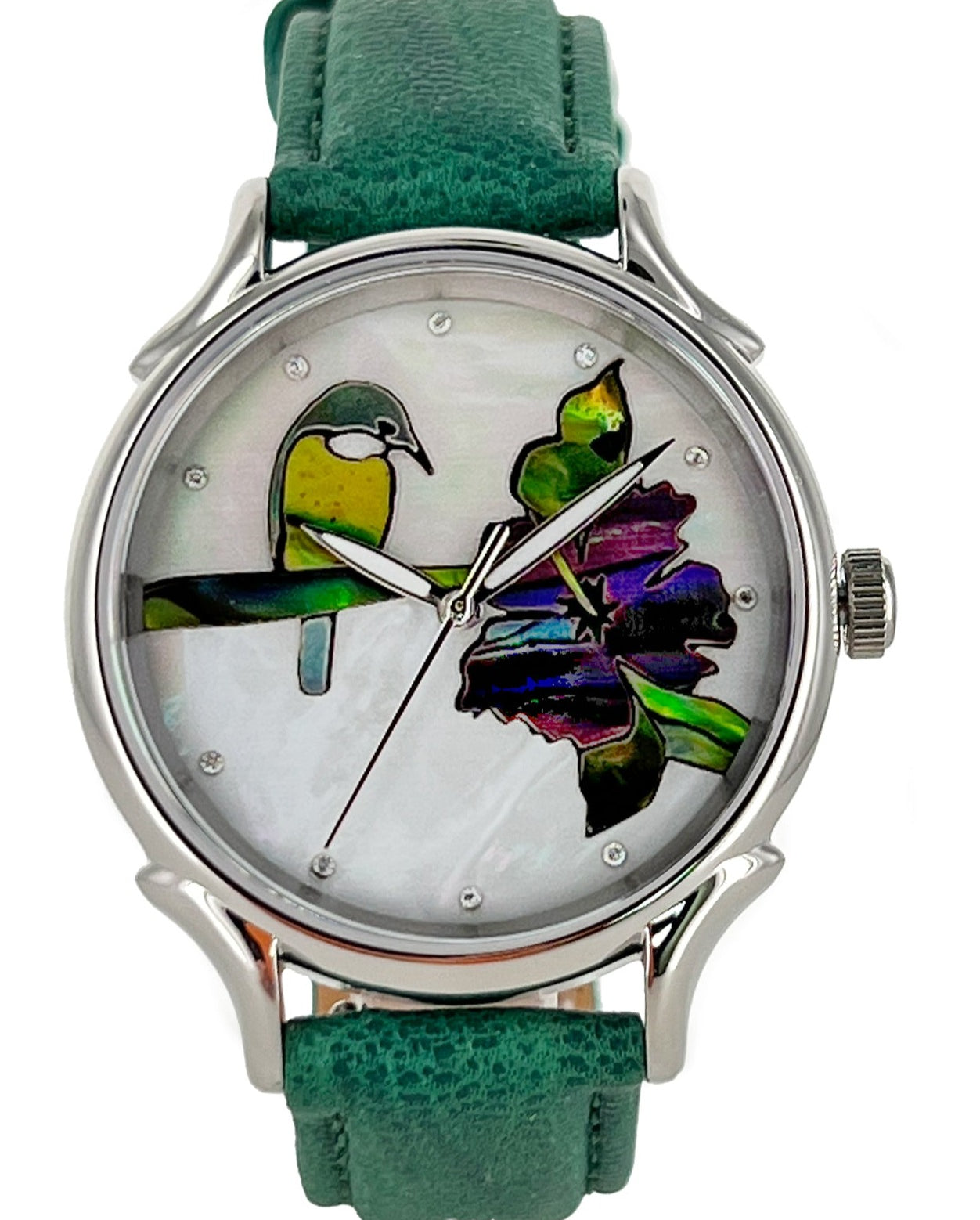 This collection explores many types of birds - their personalities, color, and character across sixteen distinct designs. Each watch is a handcrafted dial for depth or so light shifts and lifts the imagery from within the surface.