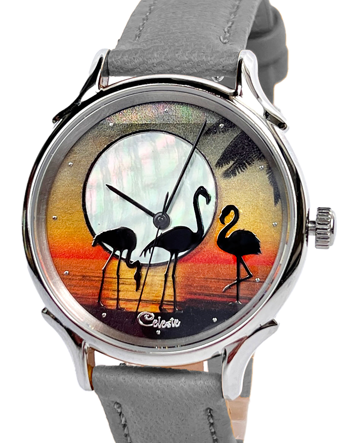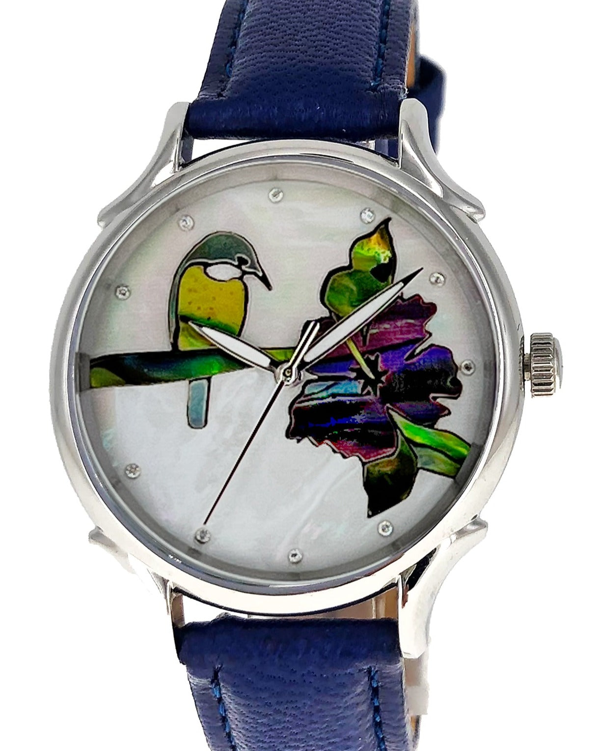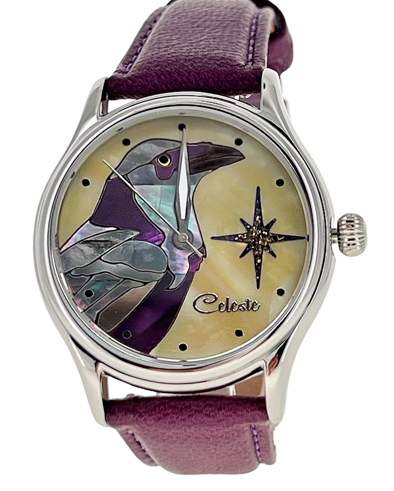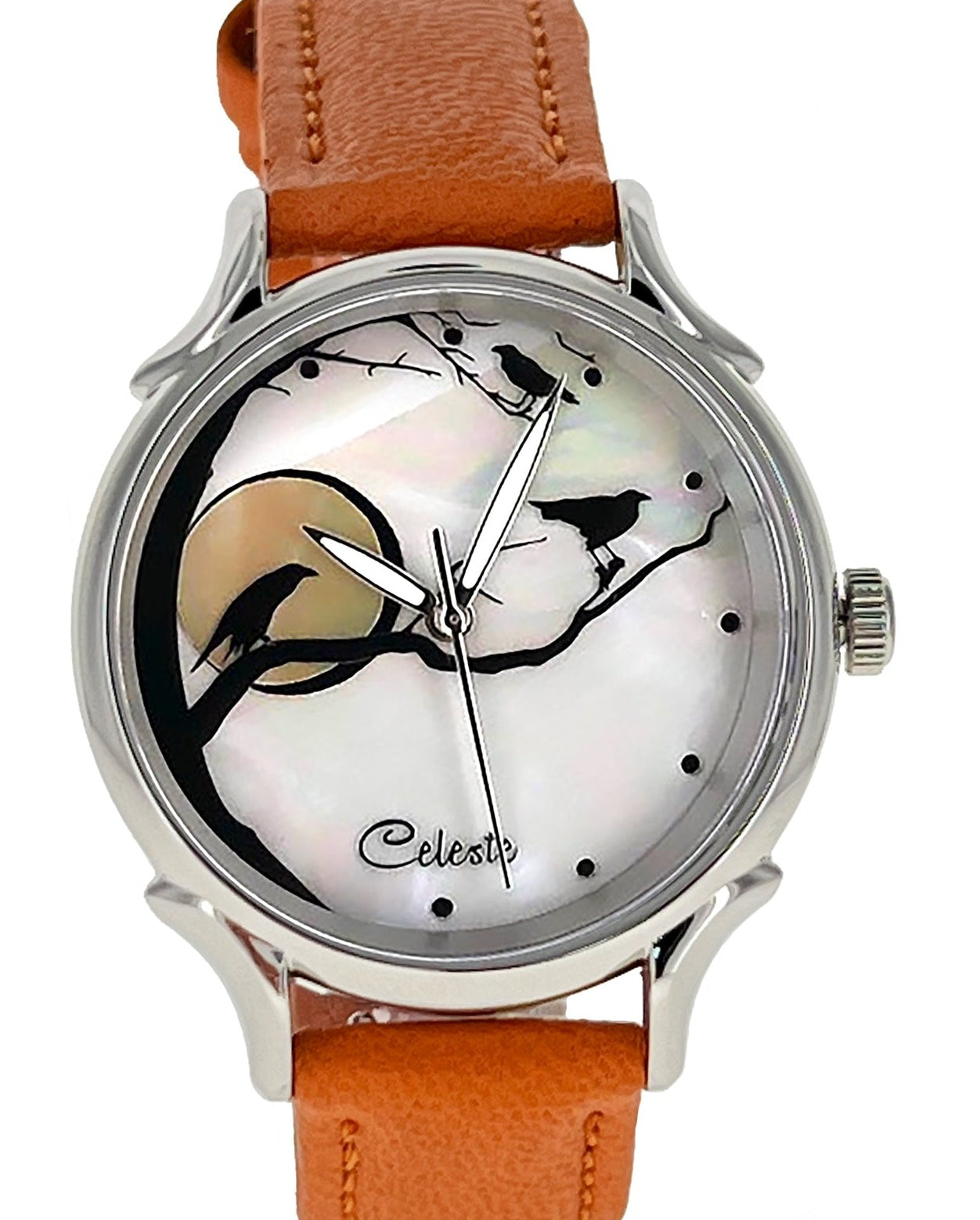 This collection explores many types of birds - their personalities, color, and character across sixteen distinct designs. Each watch is a handcrafted dial for depth or so light shifts and lifts the imagery from within the surface.
