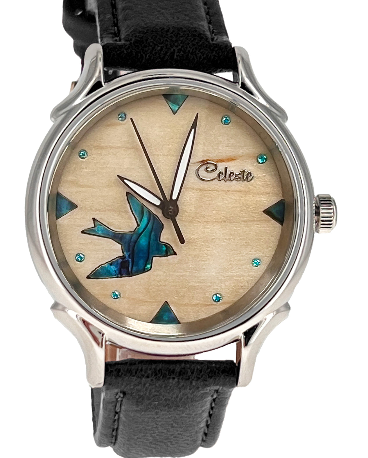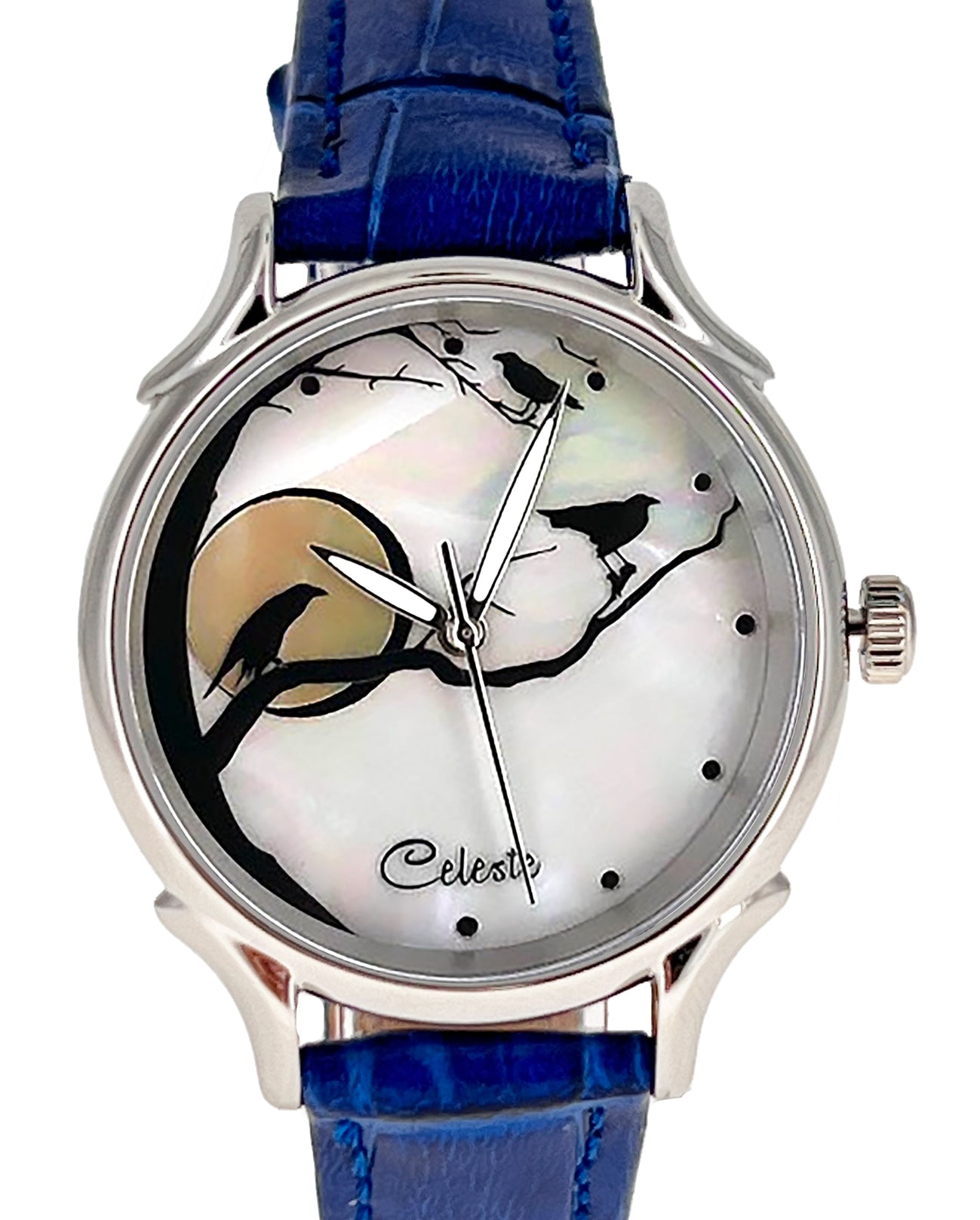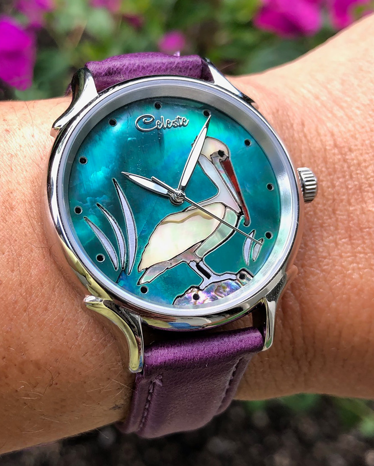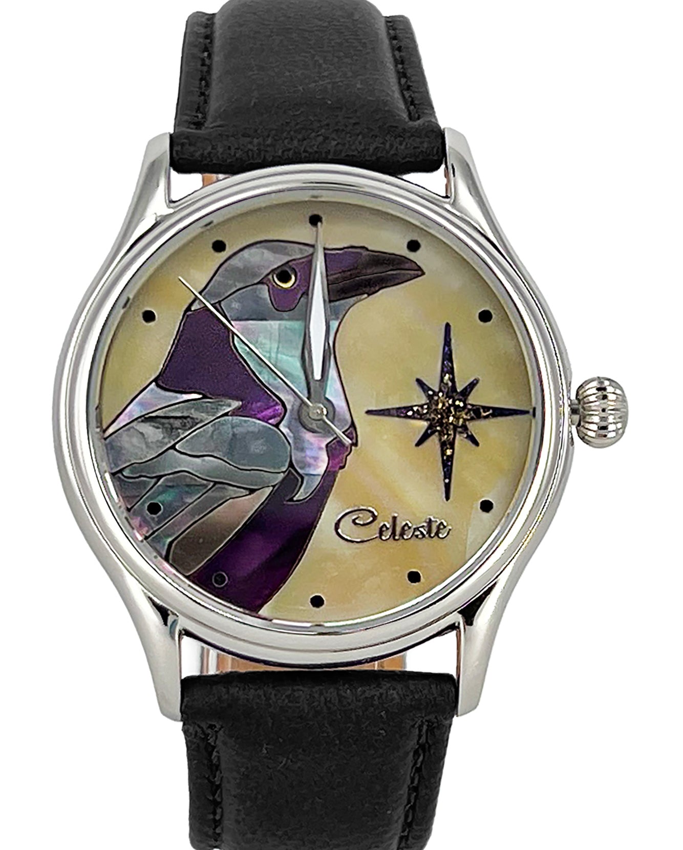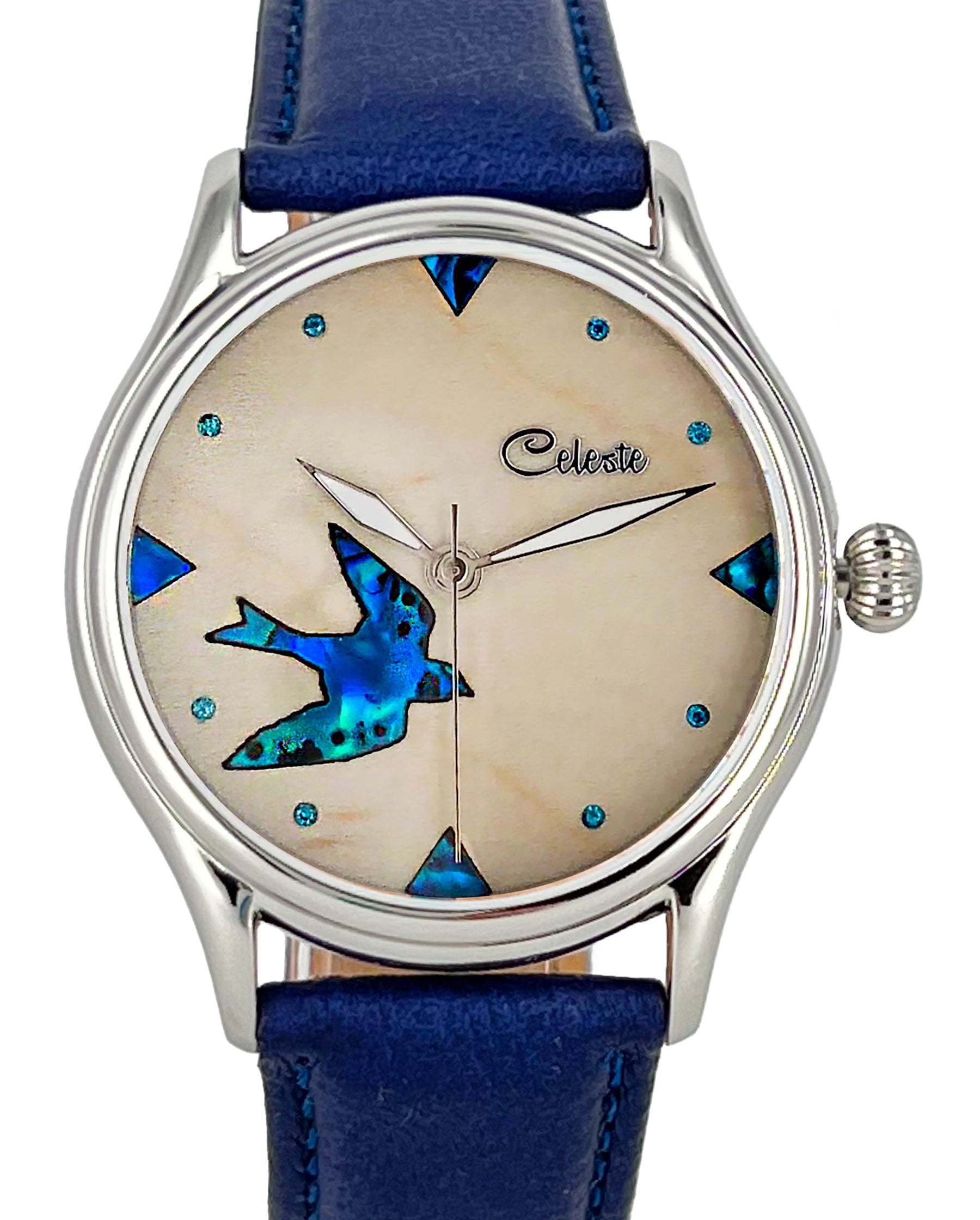 This collection explores many types of birds - their personalities, color, and character across sixteen distinct designs. Each watch is a handcrafted dial for depth or so light shifts and lifts the imagery from within the surface.