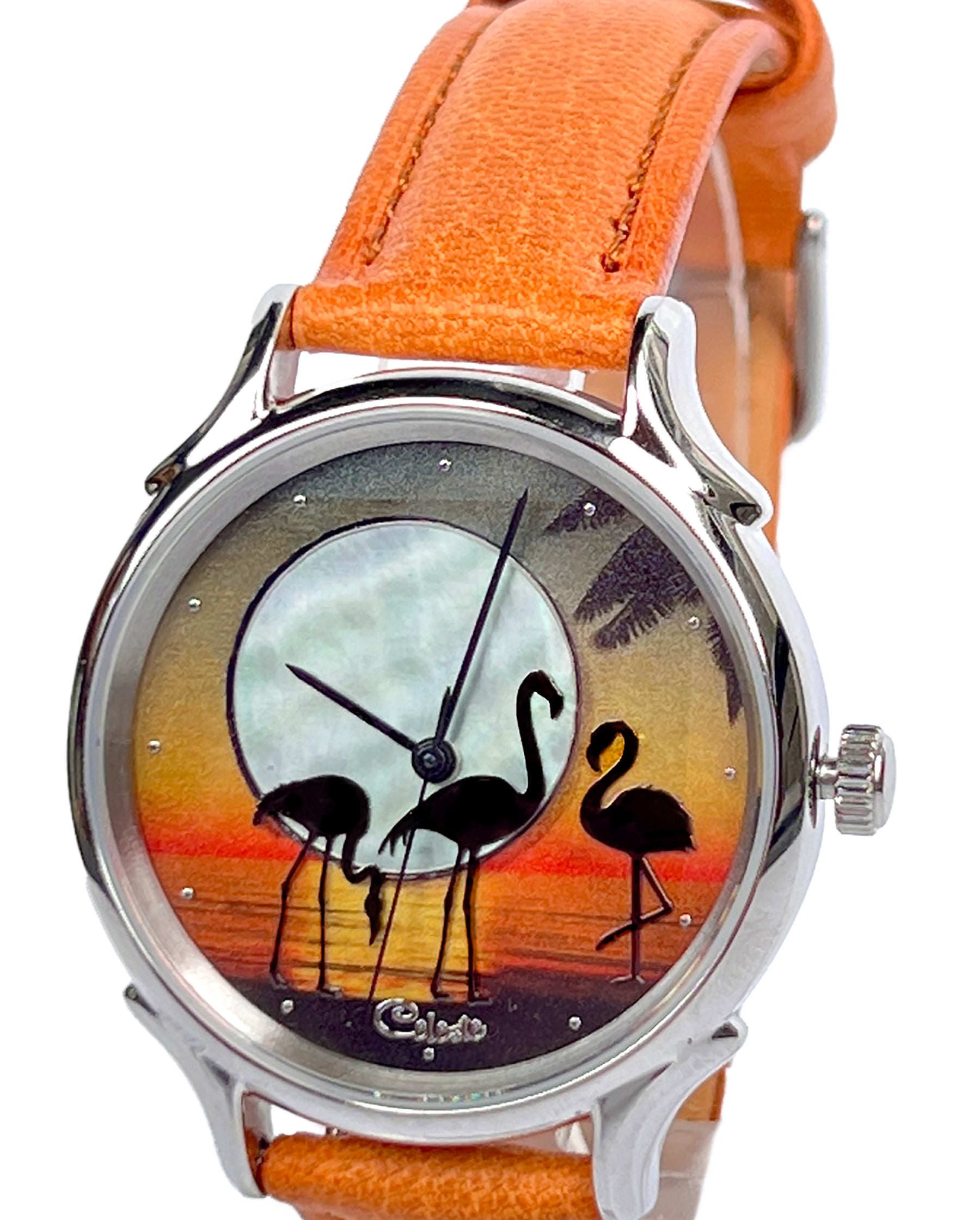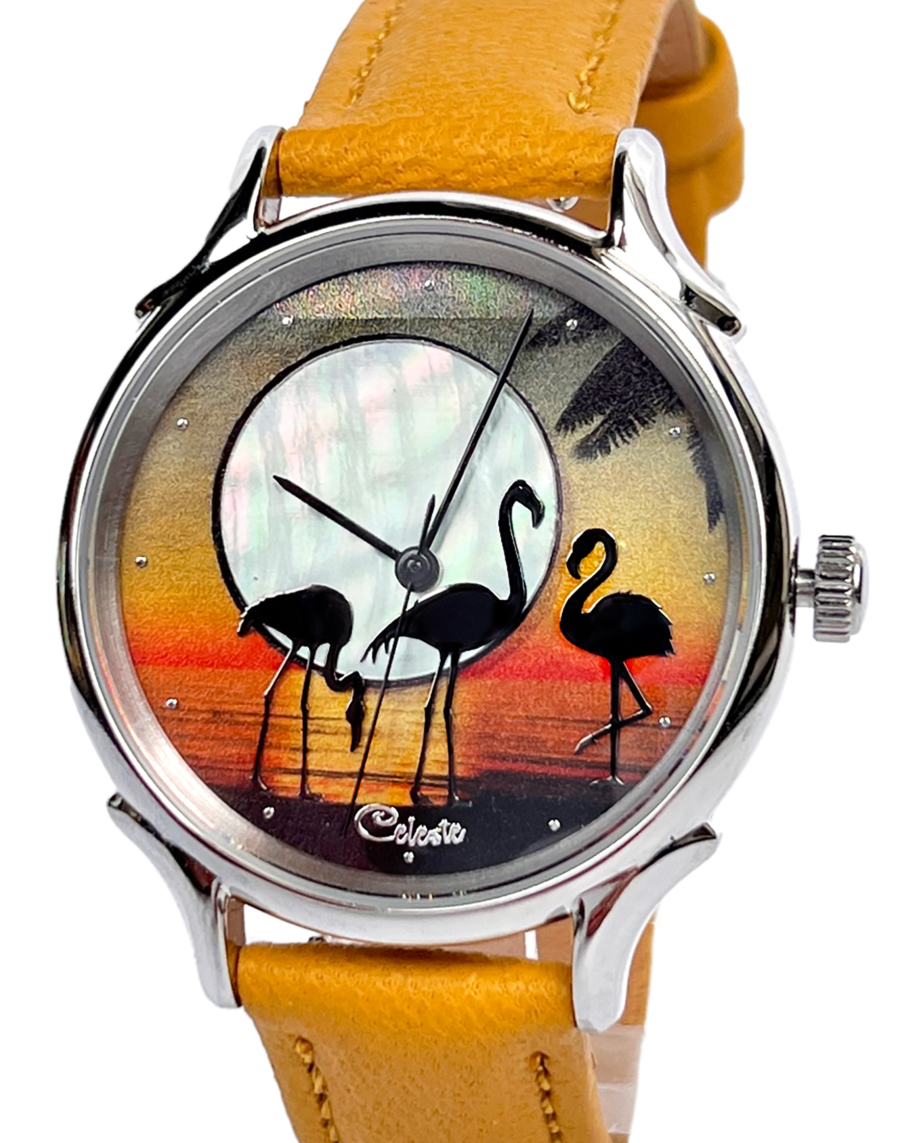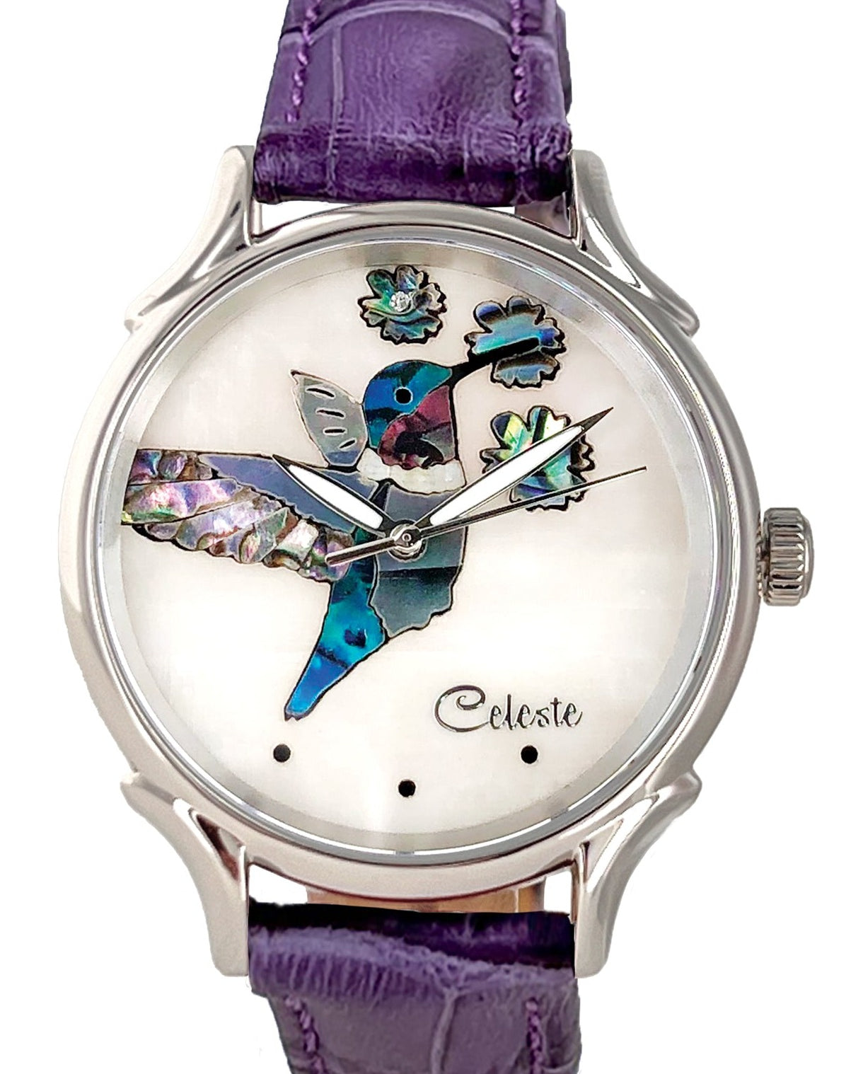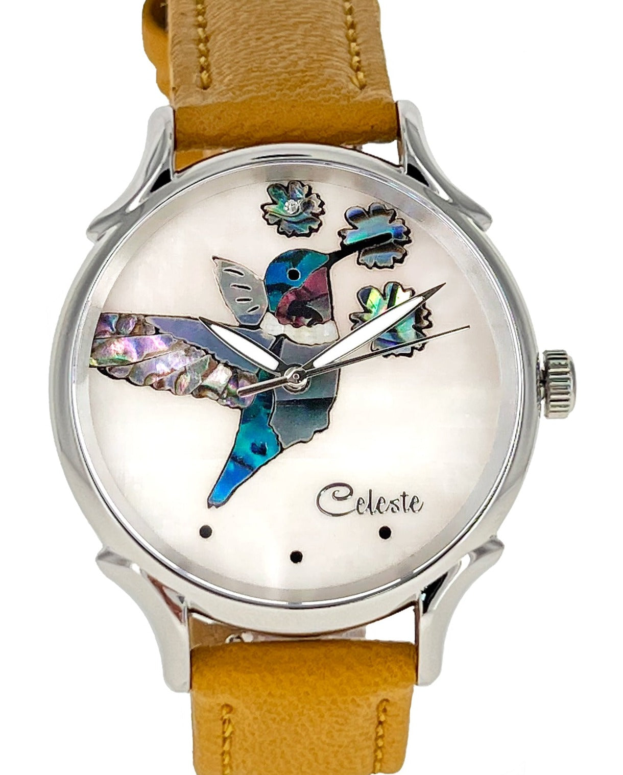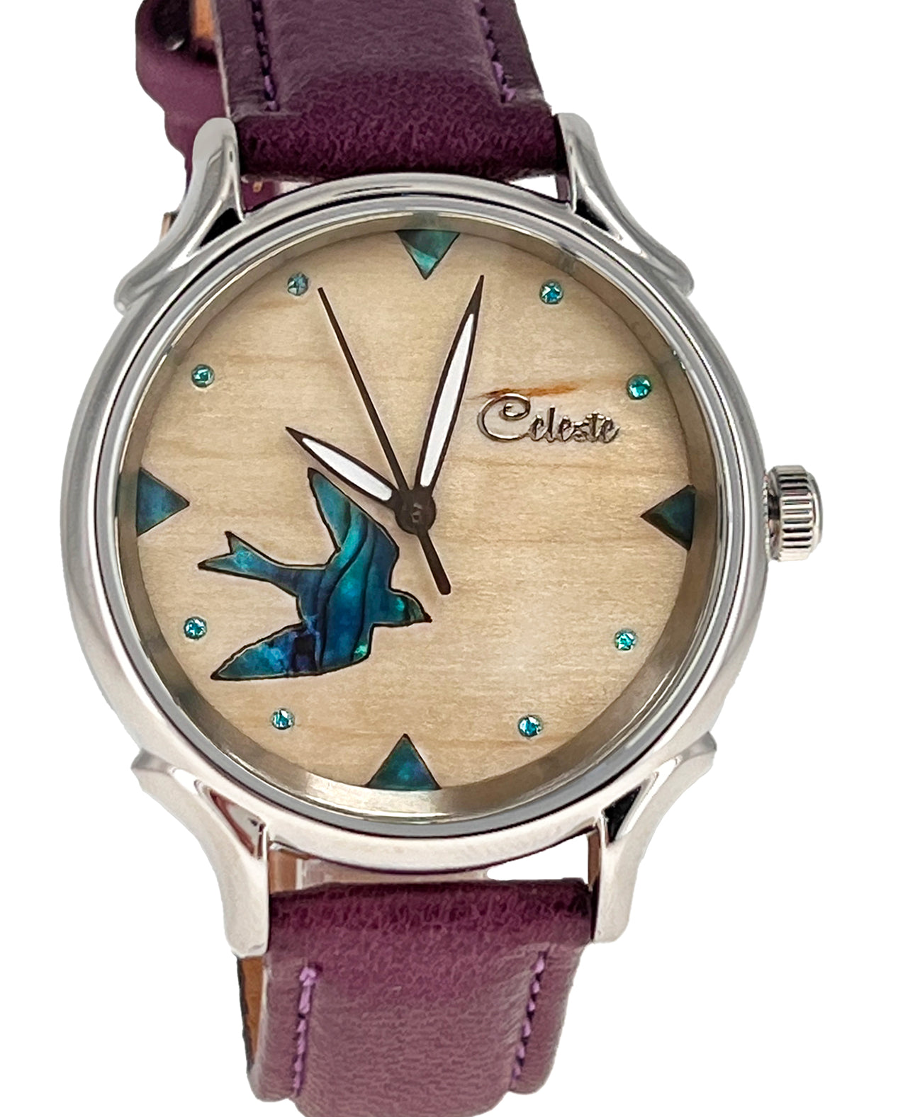 This collection explores many types of birds - their personalities, color, and character across sixteen distinct designs. Each watch is a handcrafted dial for depth or so light shifts and lifts the imagery from within the surface.