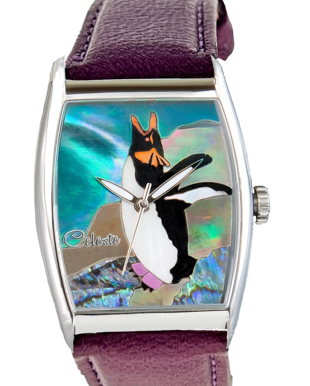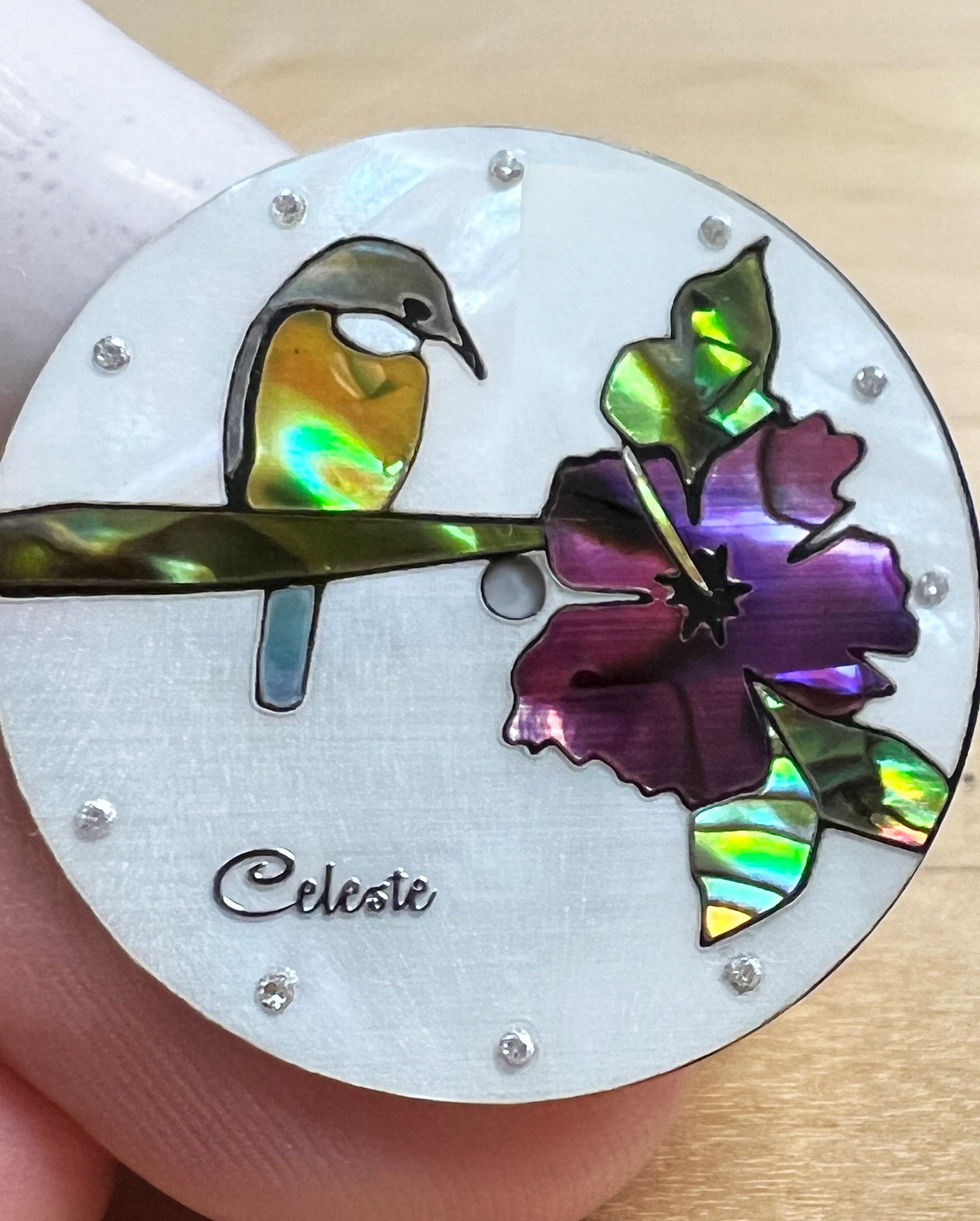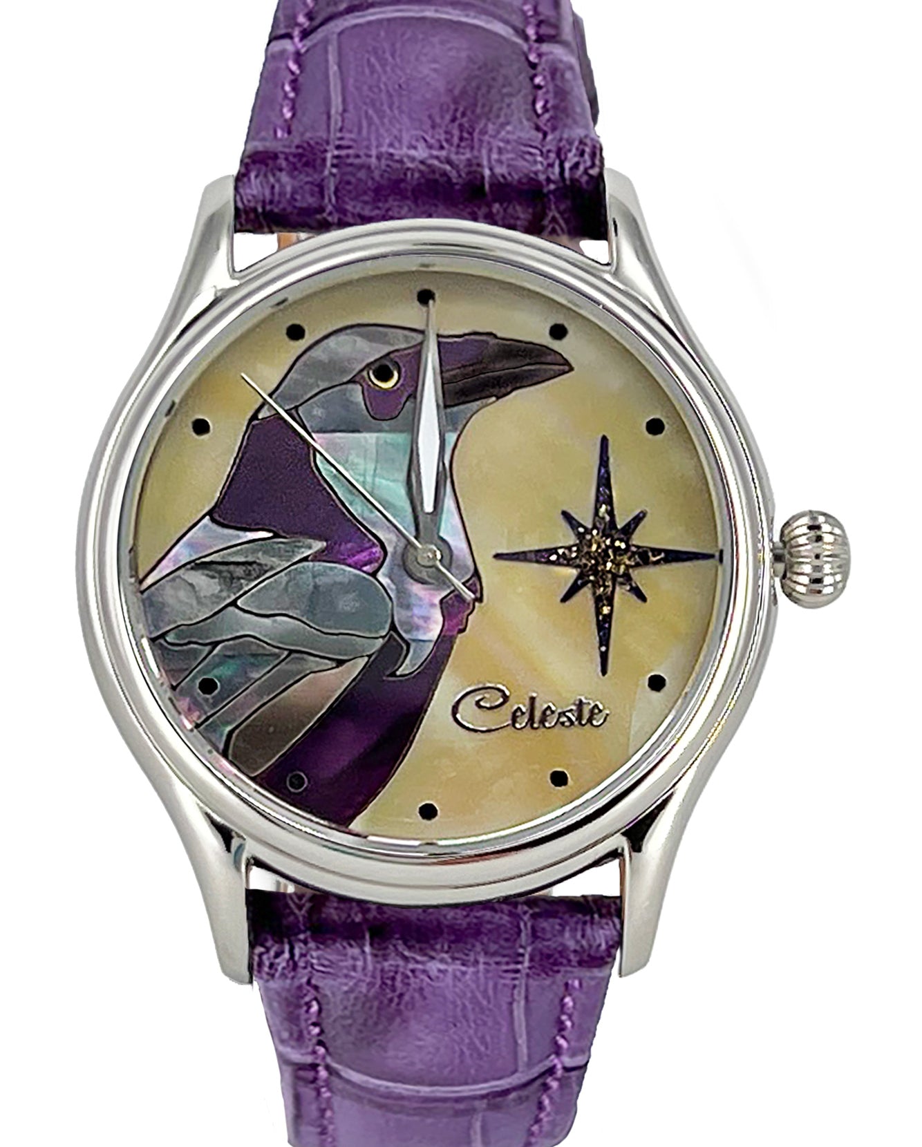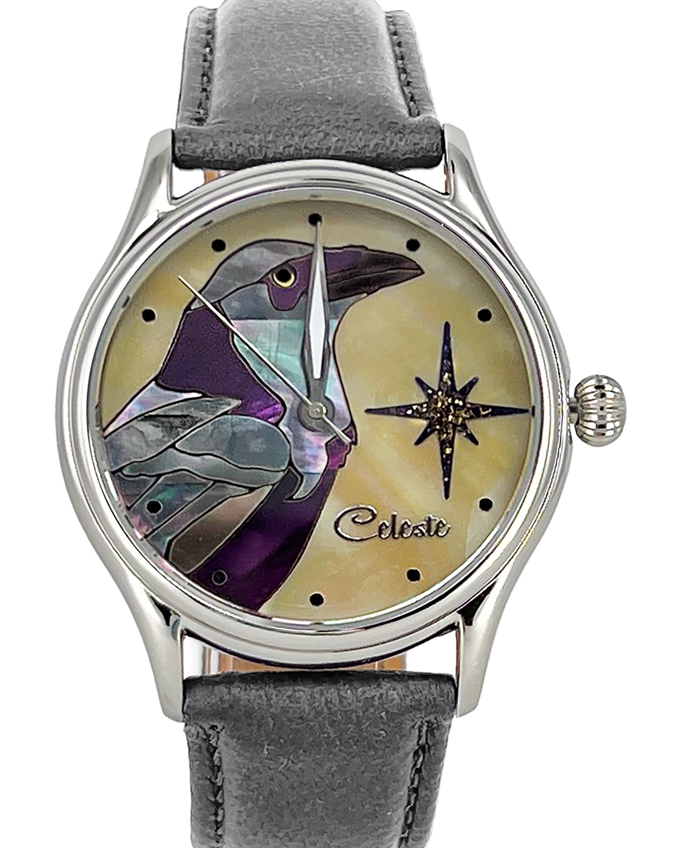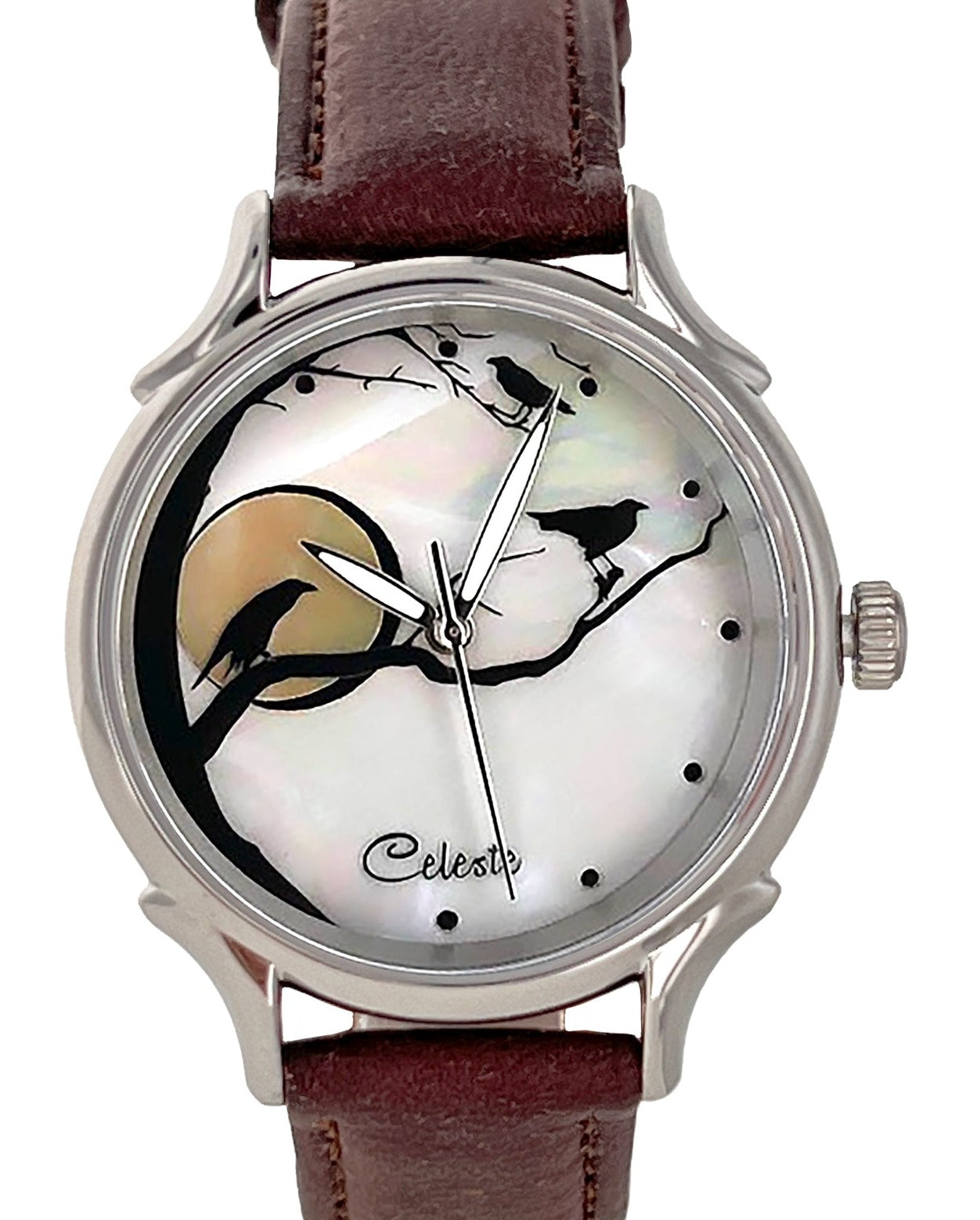 This collection explores many types of birds - their personalities, color, and character across sixteen distinct designs. Each watch is a handcrafted dial for depth or so light shifts and lifts the imagery from within the surface.