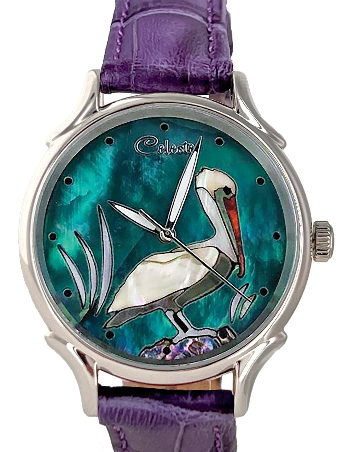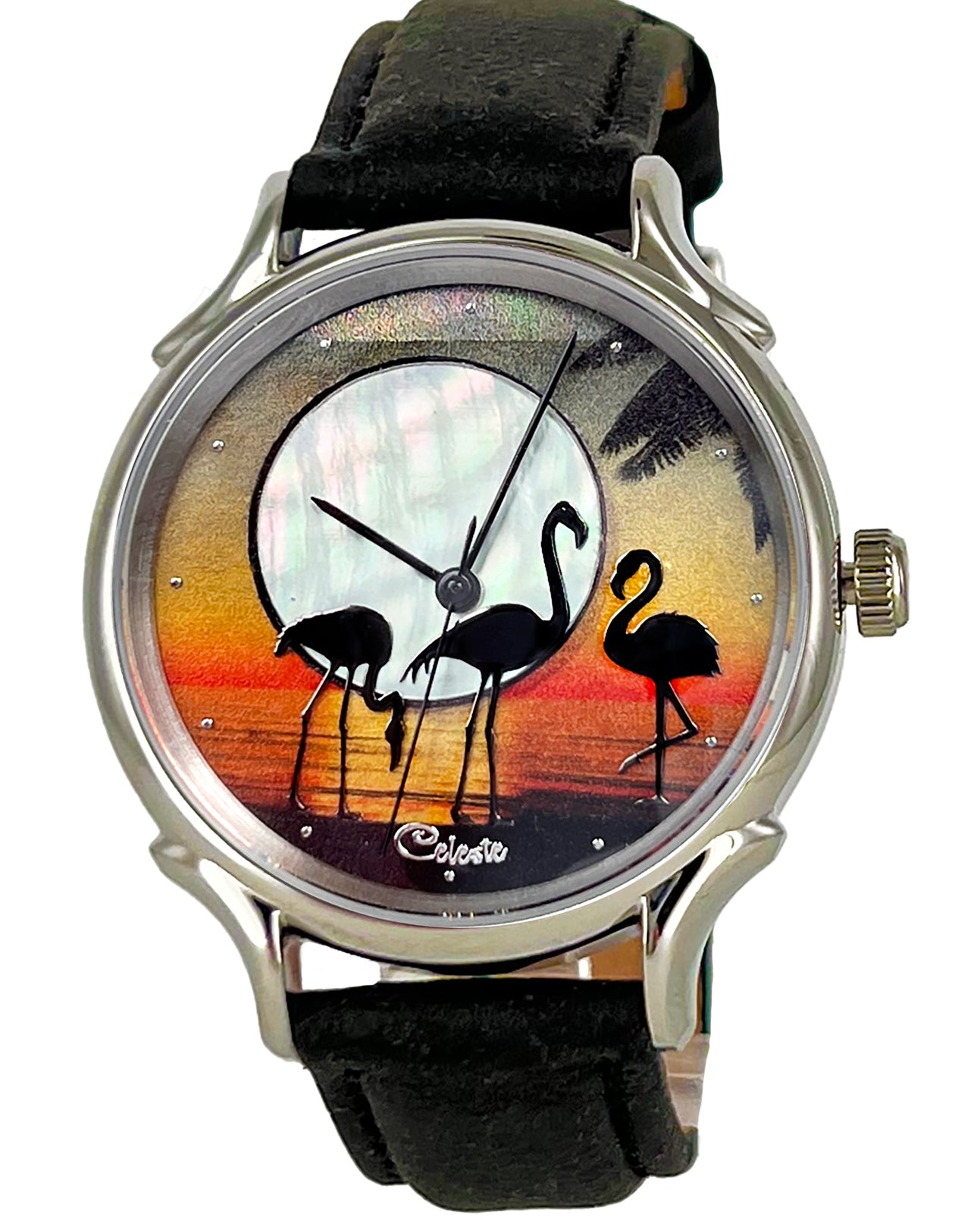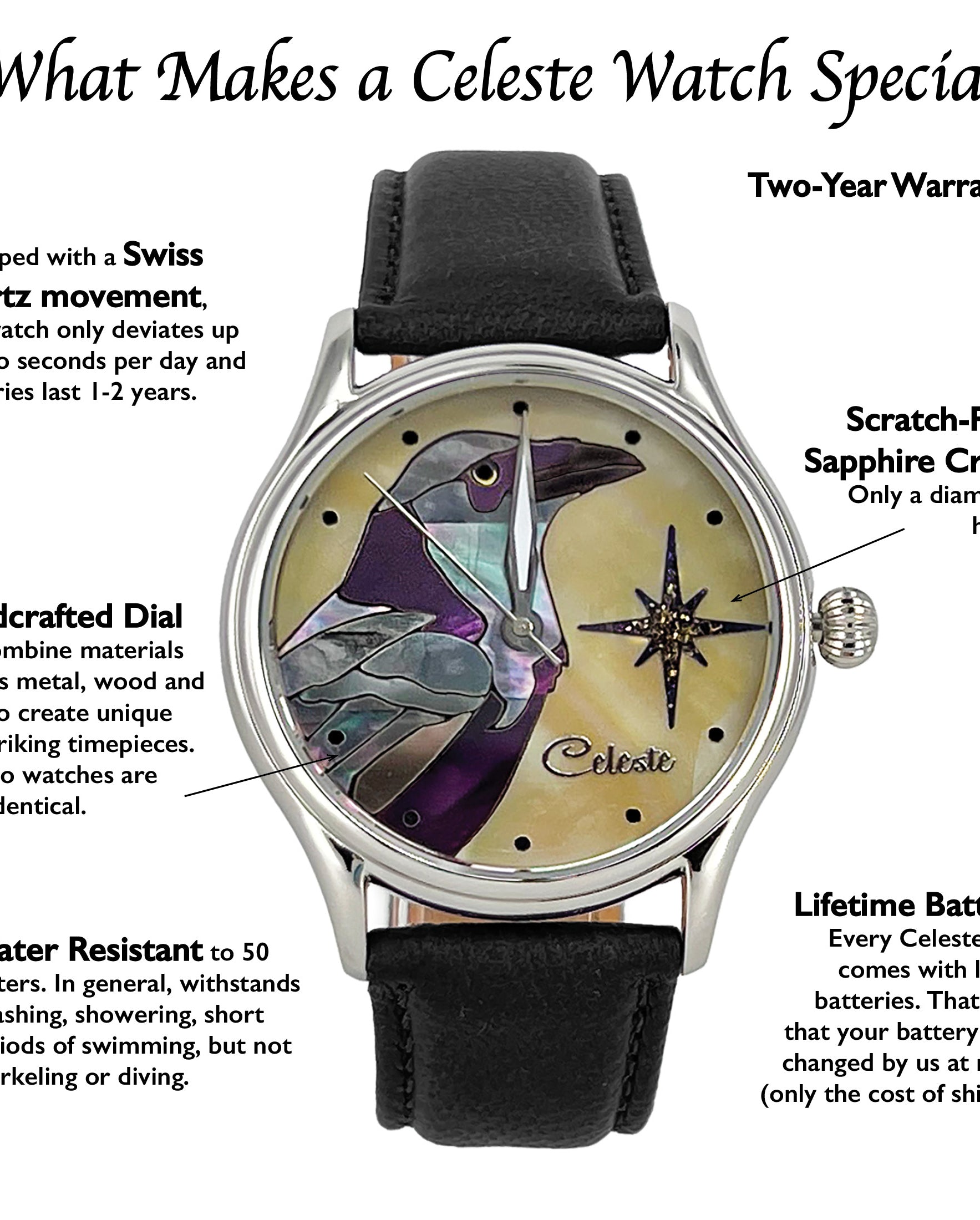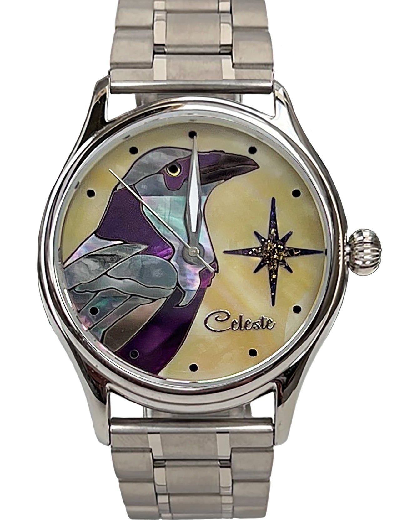 This collection explores many types of birds - their personalities, color, and character across sixteen distinct designs. Each watch is a handcrafted dial for depth or so light shifts and lifts the imagery from within the surface.