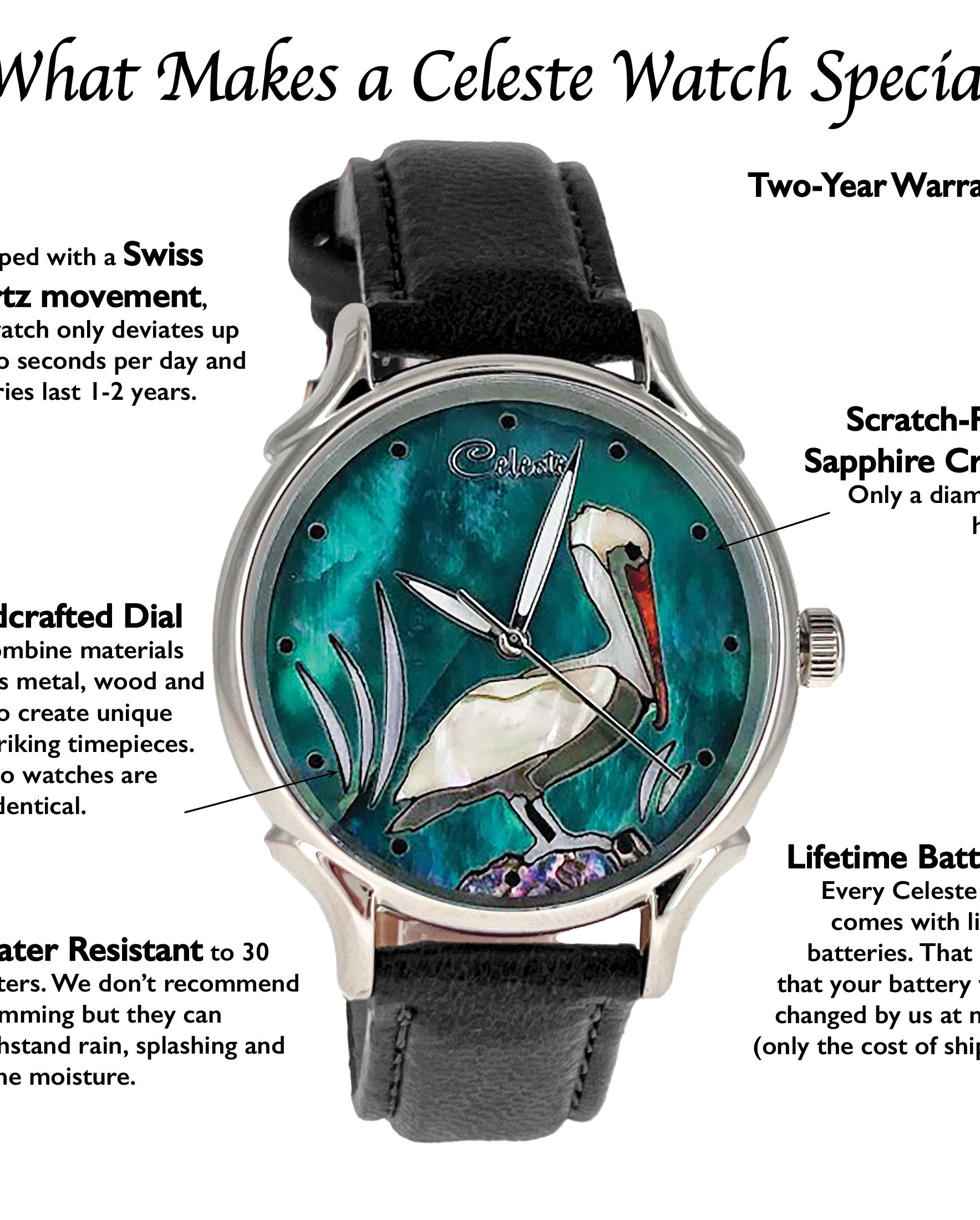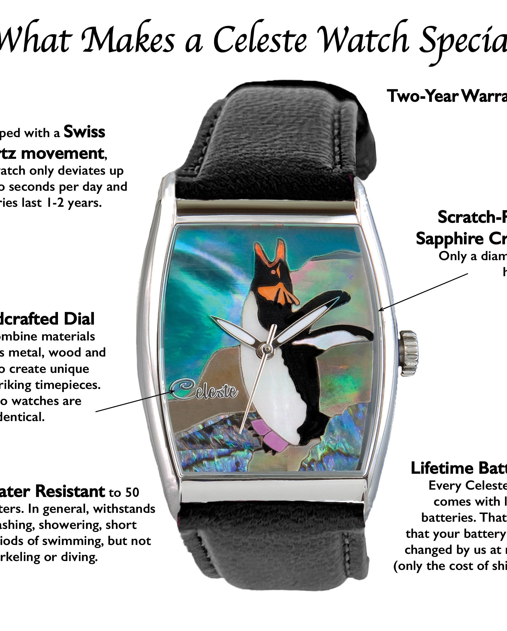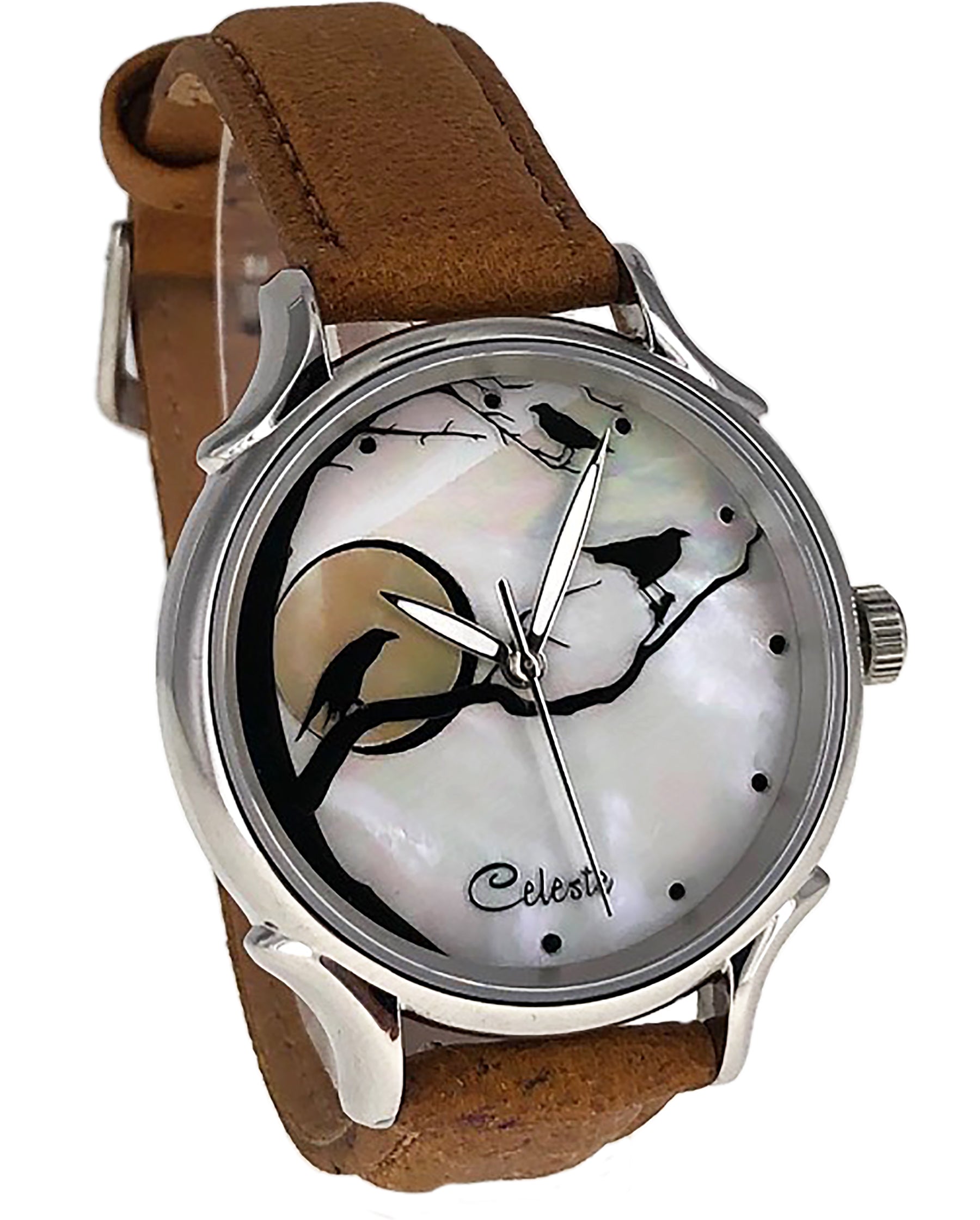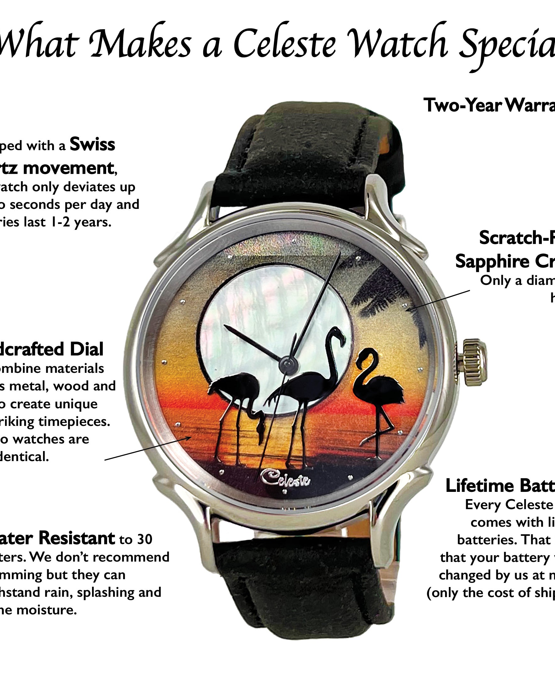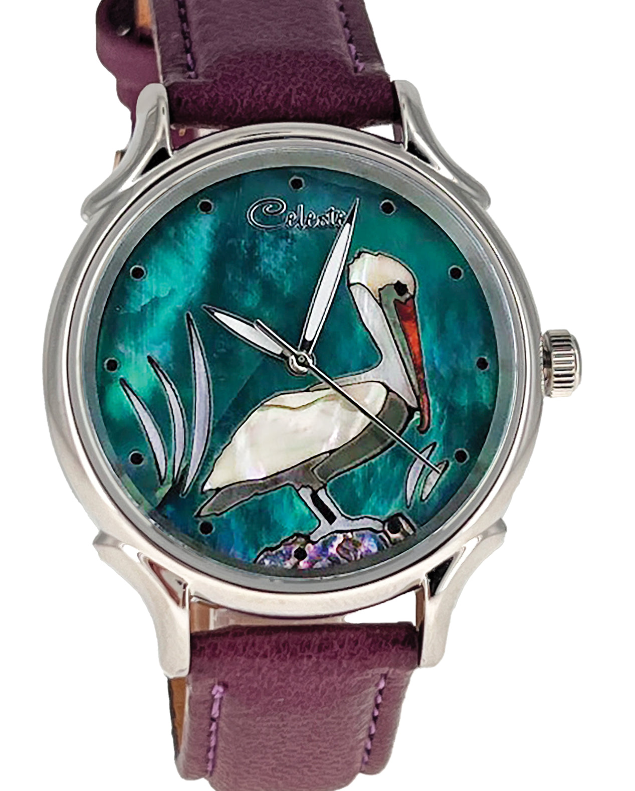 This collection explores many types of birds - their personalities, color, and character across sixteen distinct designs. Each watch is a handcrafted dial for depth or so light shifts and lifts the imagery from within the surface.