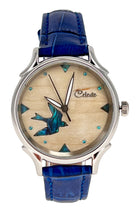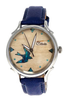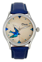 - Matching blue stones compliment the swallow as dial markers.