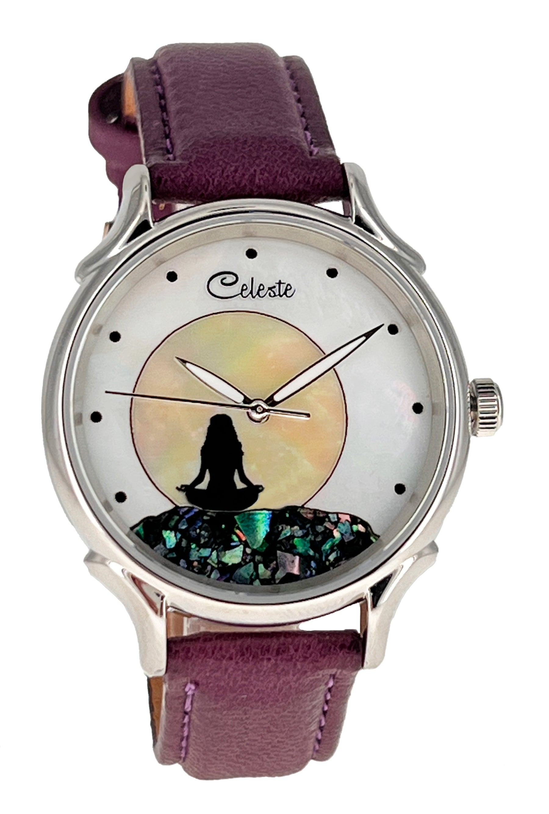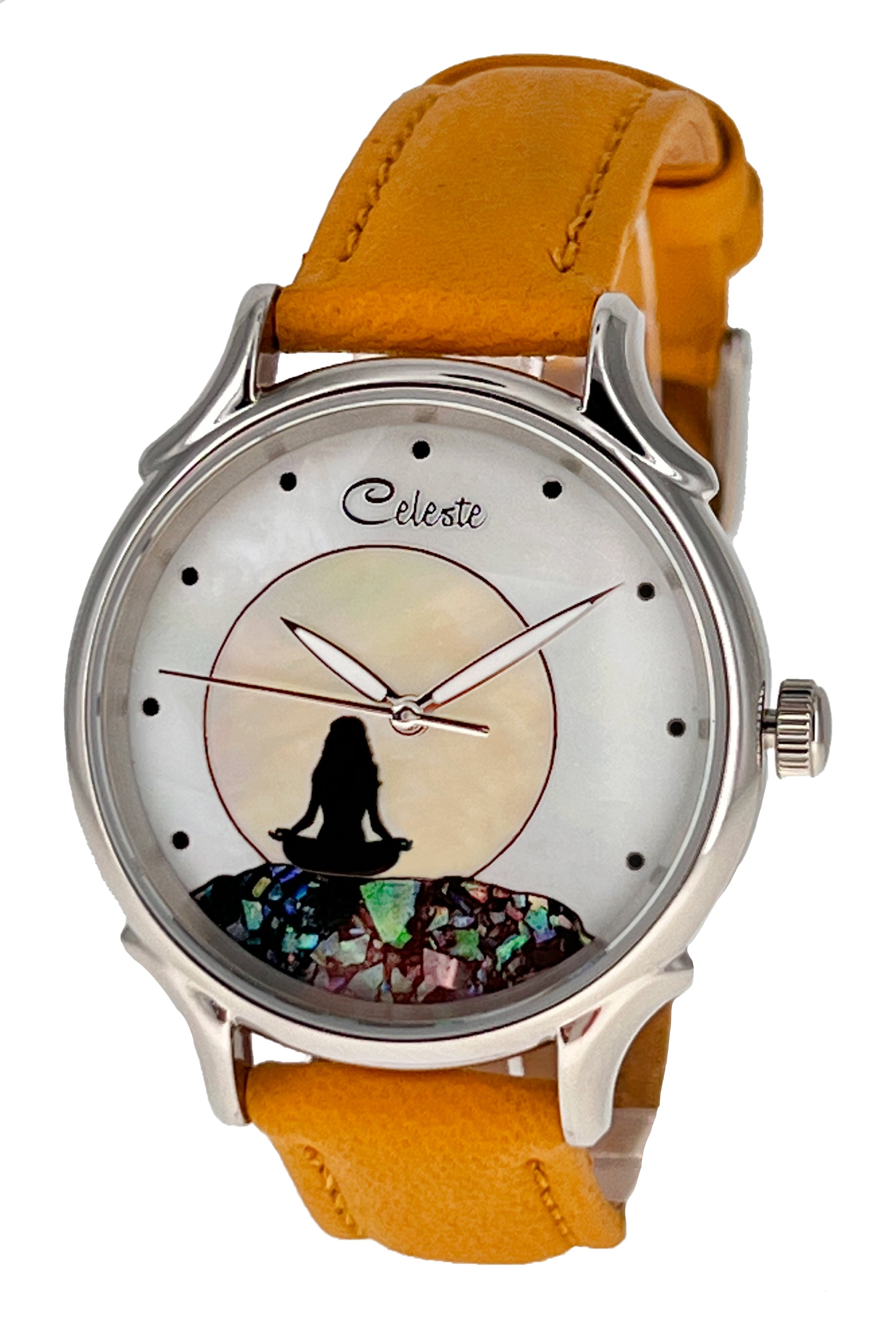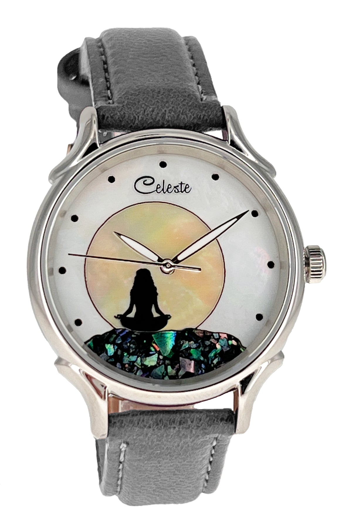 This woman and cat timepiece is about being meditative and in the moment. Meditation helps you build emotional resilience, which means you are able to bounce back from bad moods more quickly and are less likely to become upset. Through regular meditation, we can observe and accept our own emotions, and are better able to recognize how those around us are feeling. Beautifully crafted with iridescent shell, the dial shows the strong connection between mindful meditation, an improved spiritual connection and bliss.
