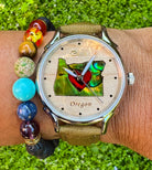 - Every watch dial is handcrafted in our studio in Oregon. Dials are primarily abalone shell and/or Mother of Pearl inlays but many also contain wood and metal pieces.