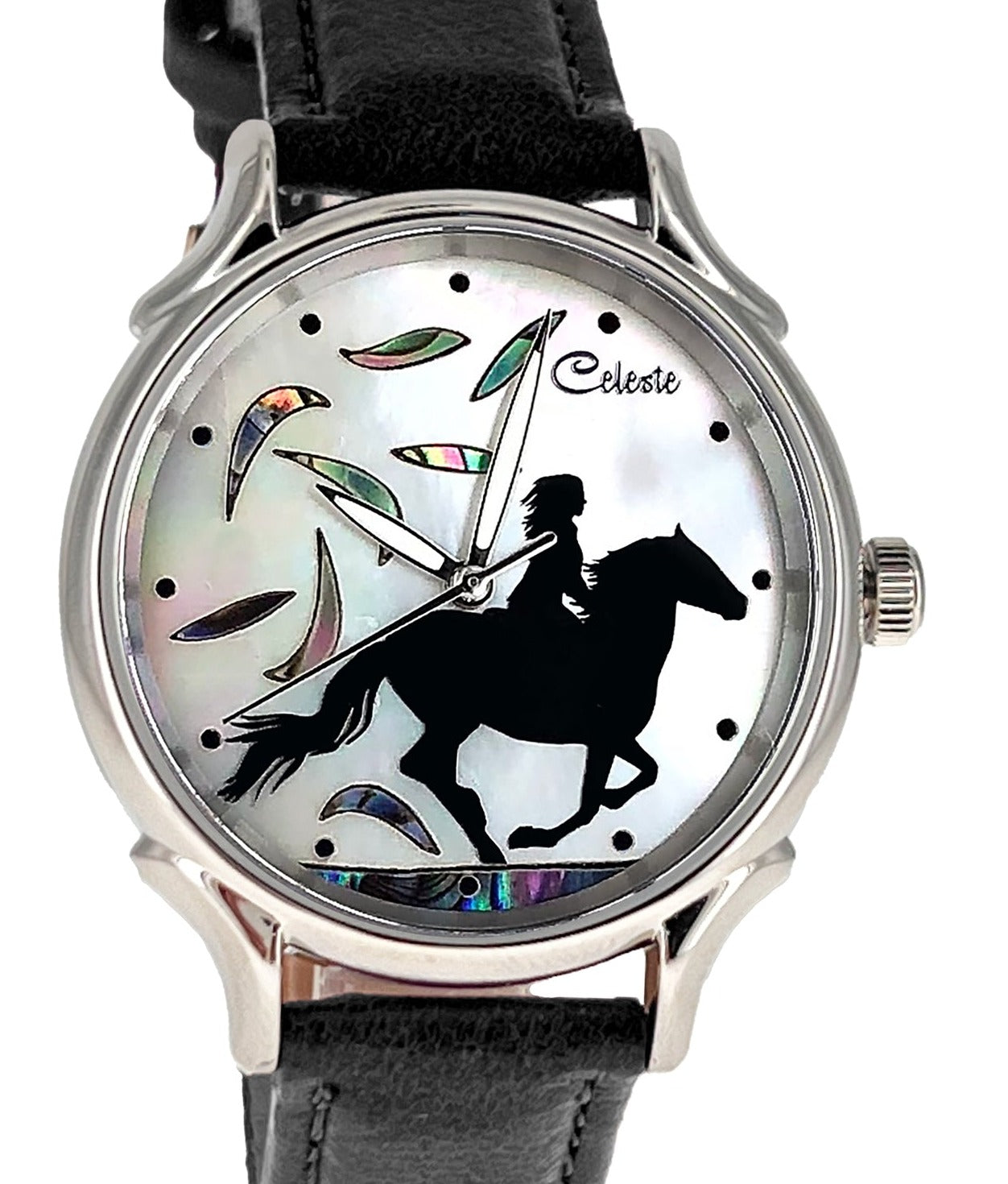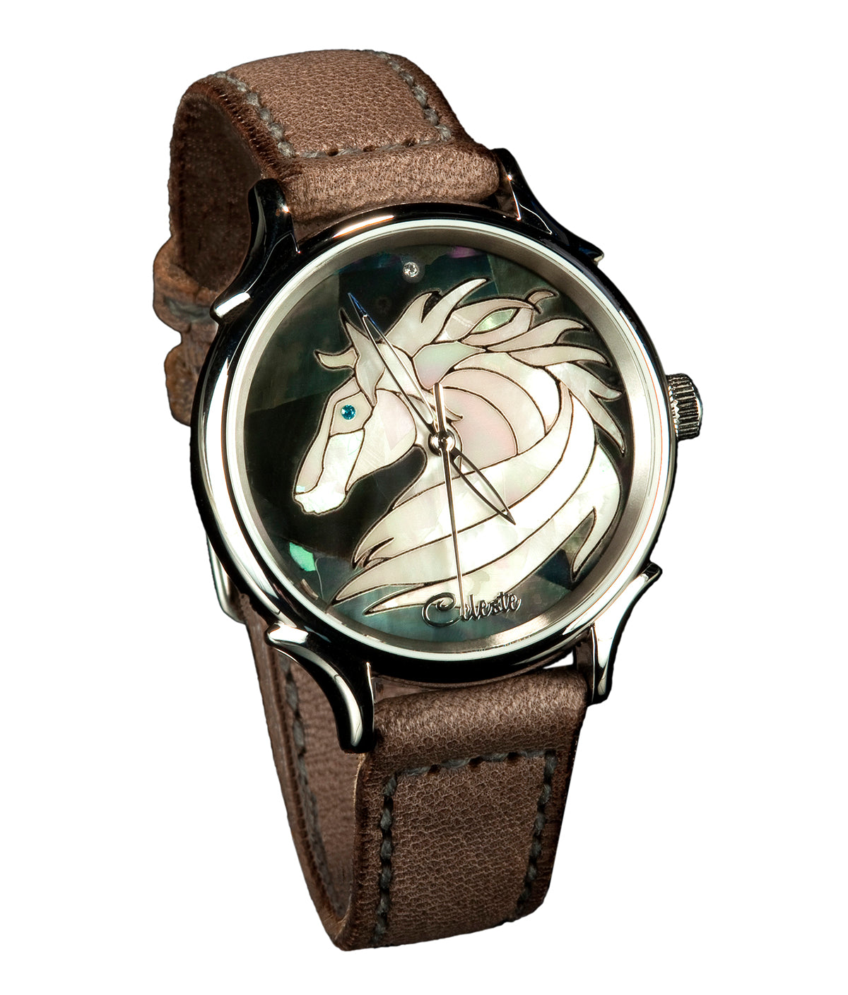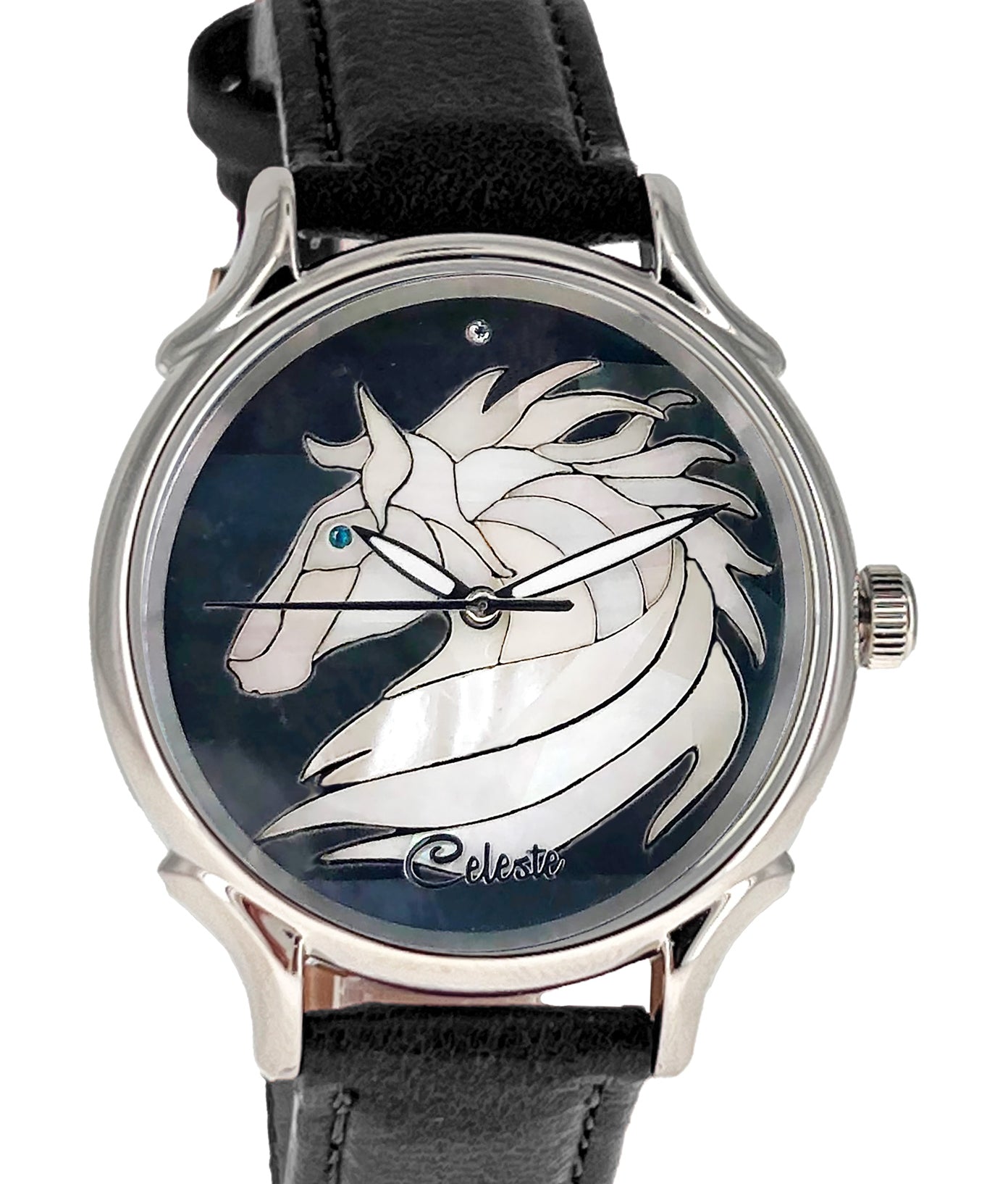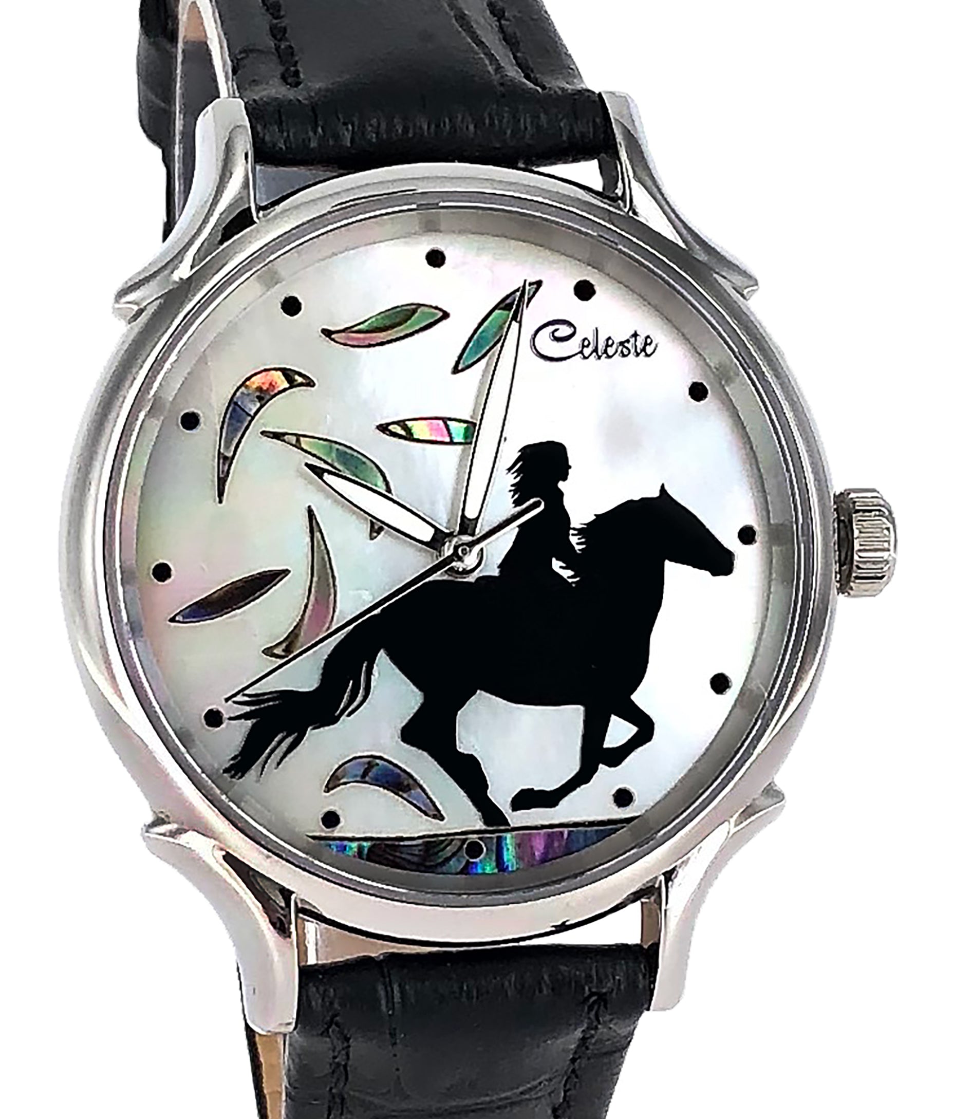 This collection brings together five designs featuring horse dials created with hand-inlaid shell and cloisonné enamel. Created by Celeste Watch Company and enamel artist Merry-Lee Rae, each dial captures movement, spirit, and dimensional detail.