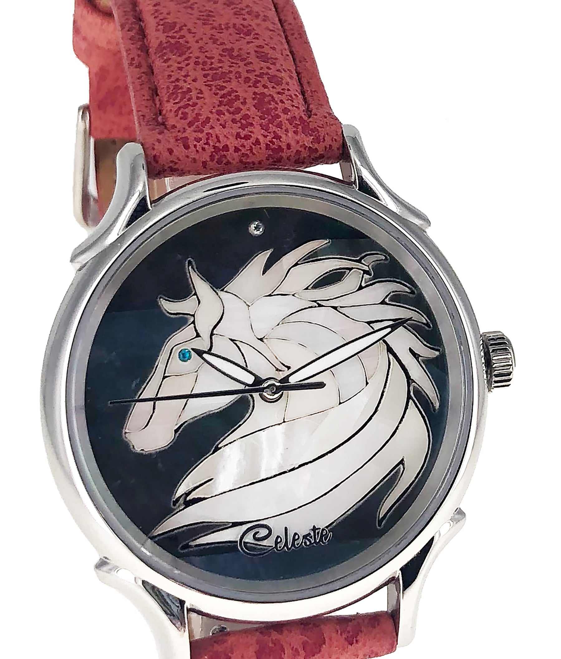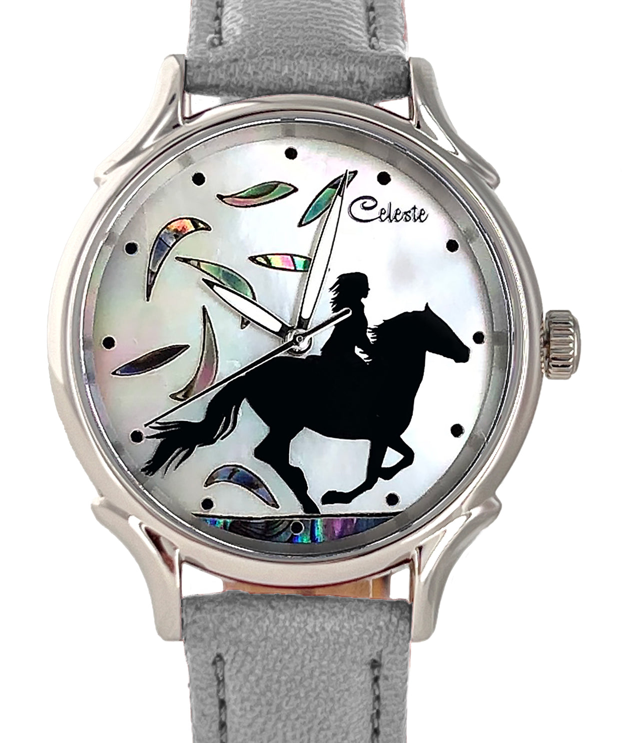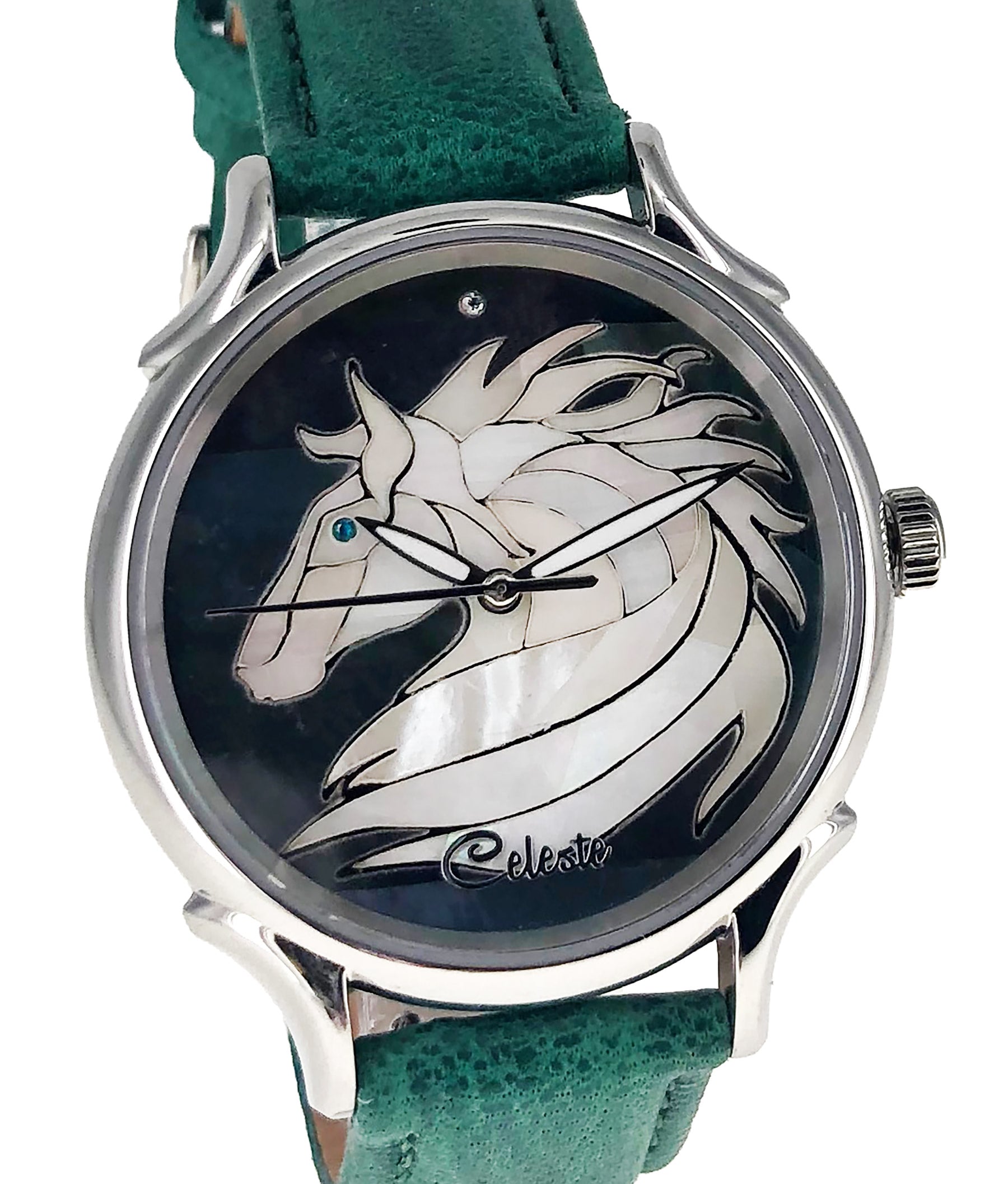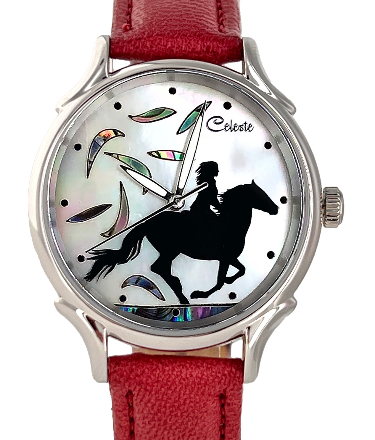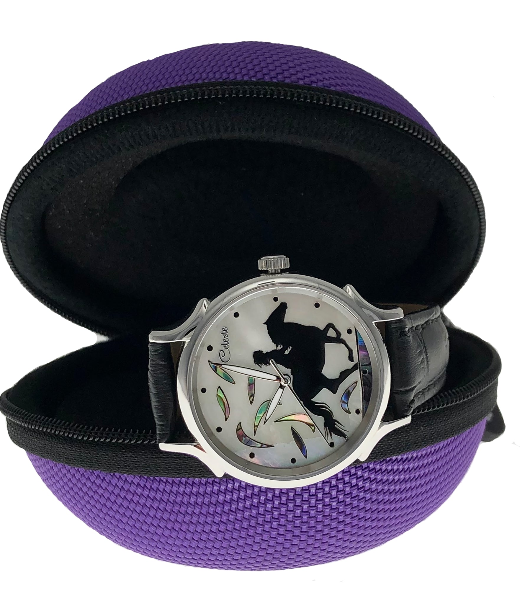 This collection brings together five designs featuring horse dials created with hand-inlaid shell and cloisonné enamel. Created by Celeste Watch Company and enamel artist Merry-Lee Rae, each dial captures movement, spirit, and dimensional detail.