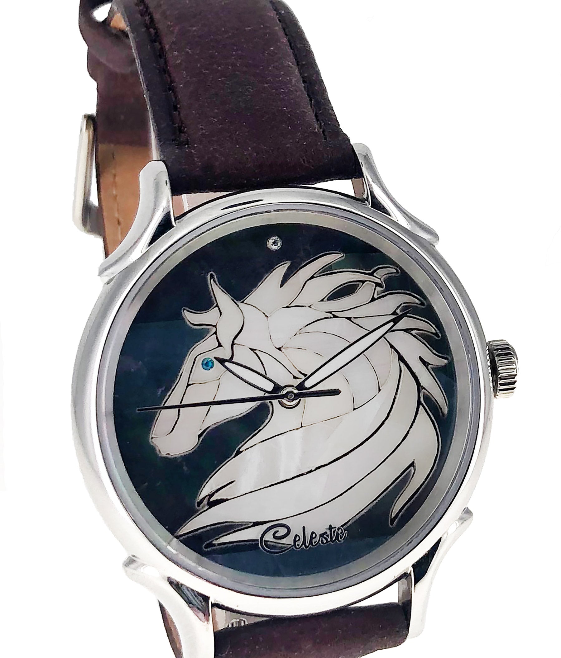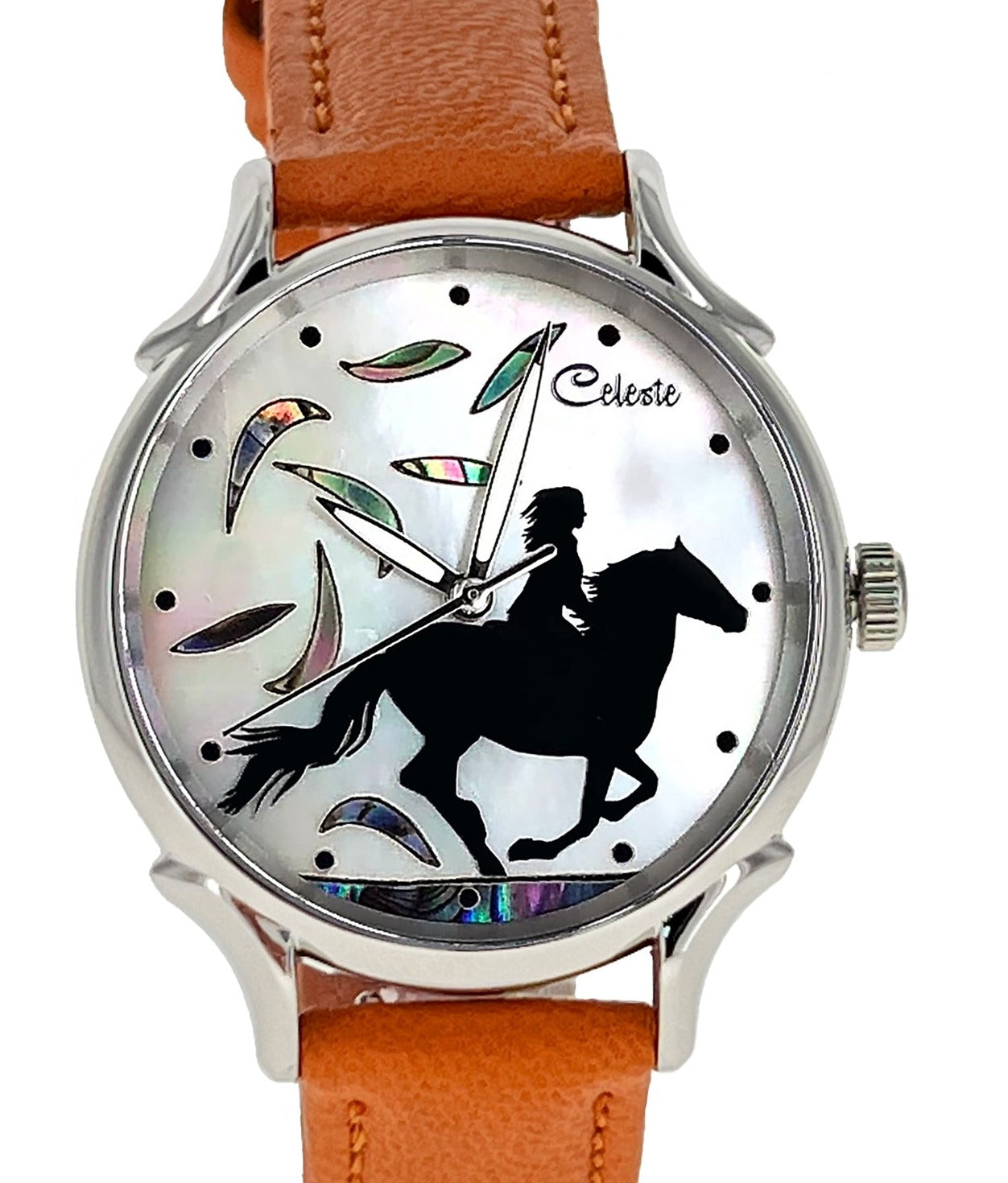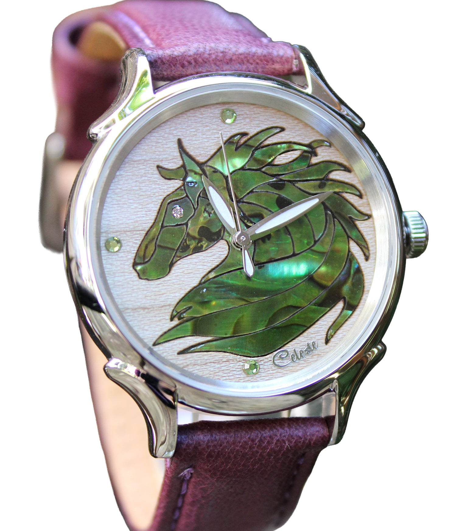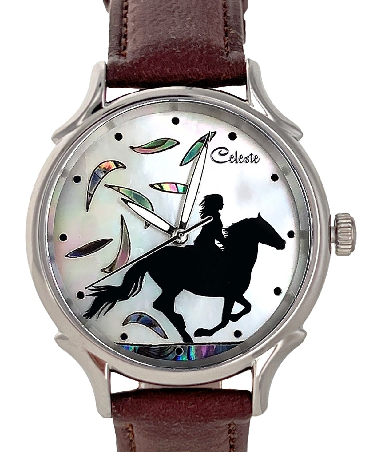 This collection brings together five designs featuring horse dials created with hand-inlaid shell and cloisonné enamel. Created by Celeste Watch Company and enamel artist Merry-Lee Rae, each dial captures movement, spirit, and dimensional detail.