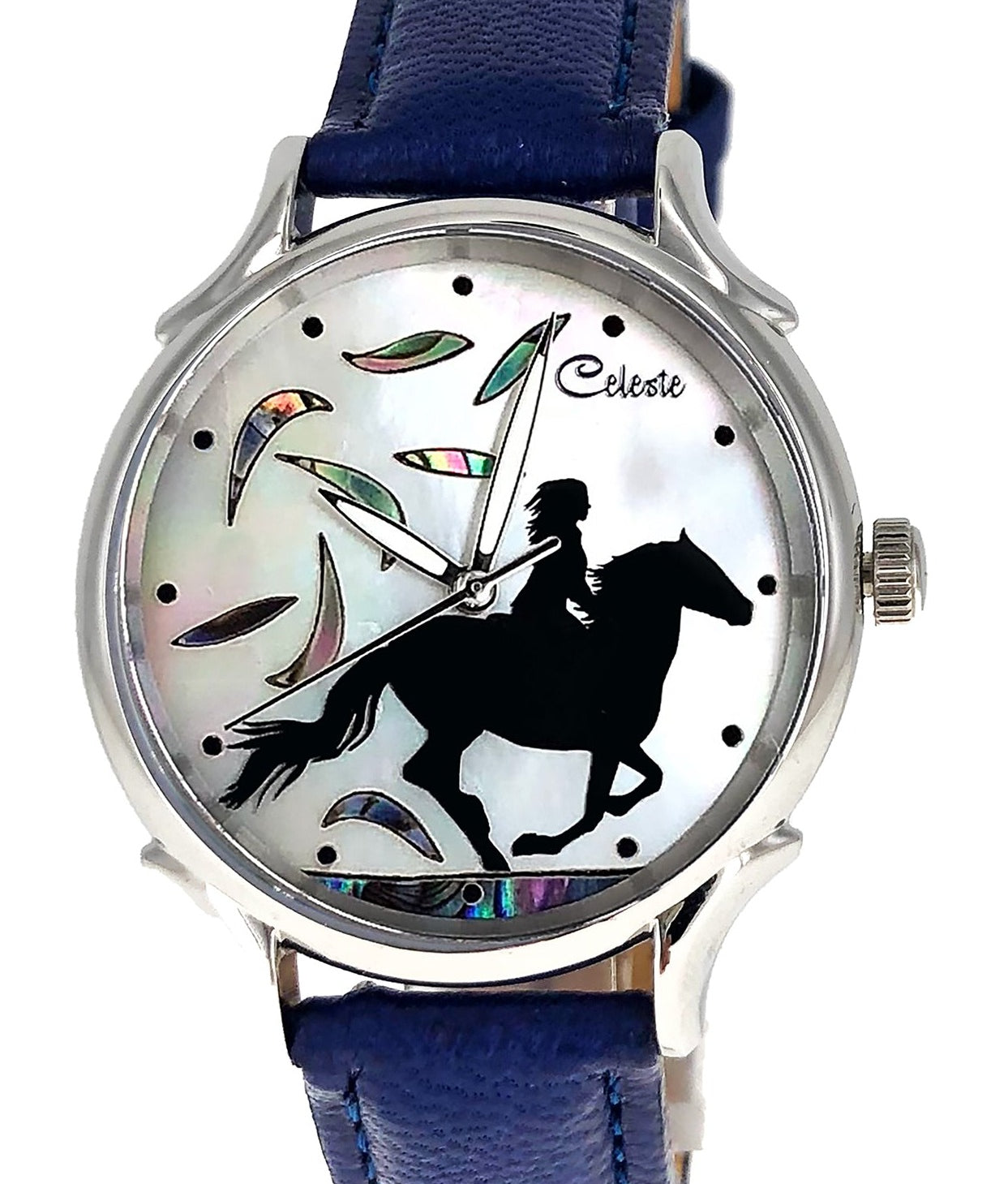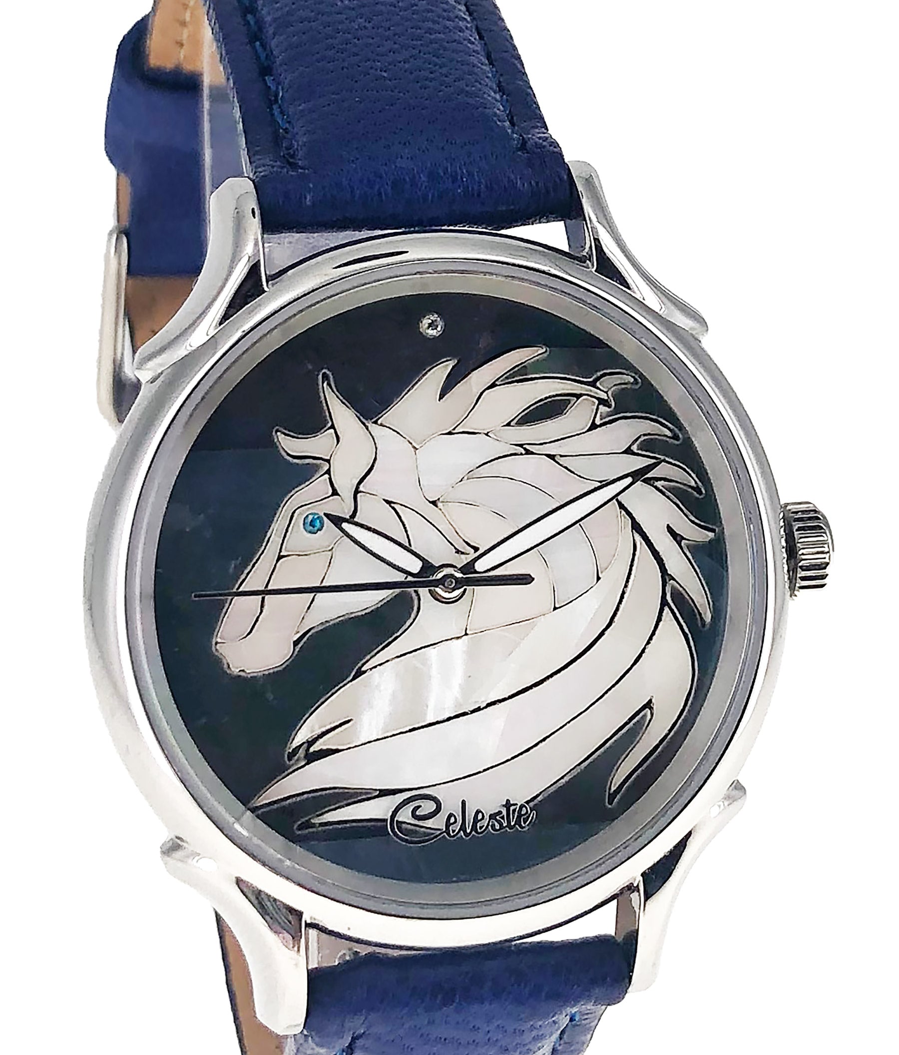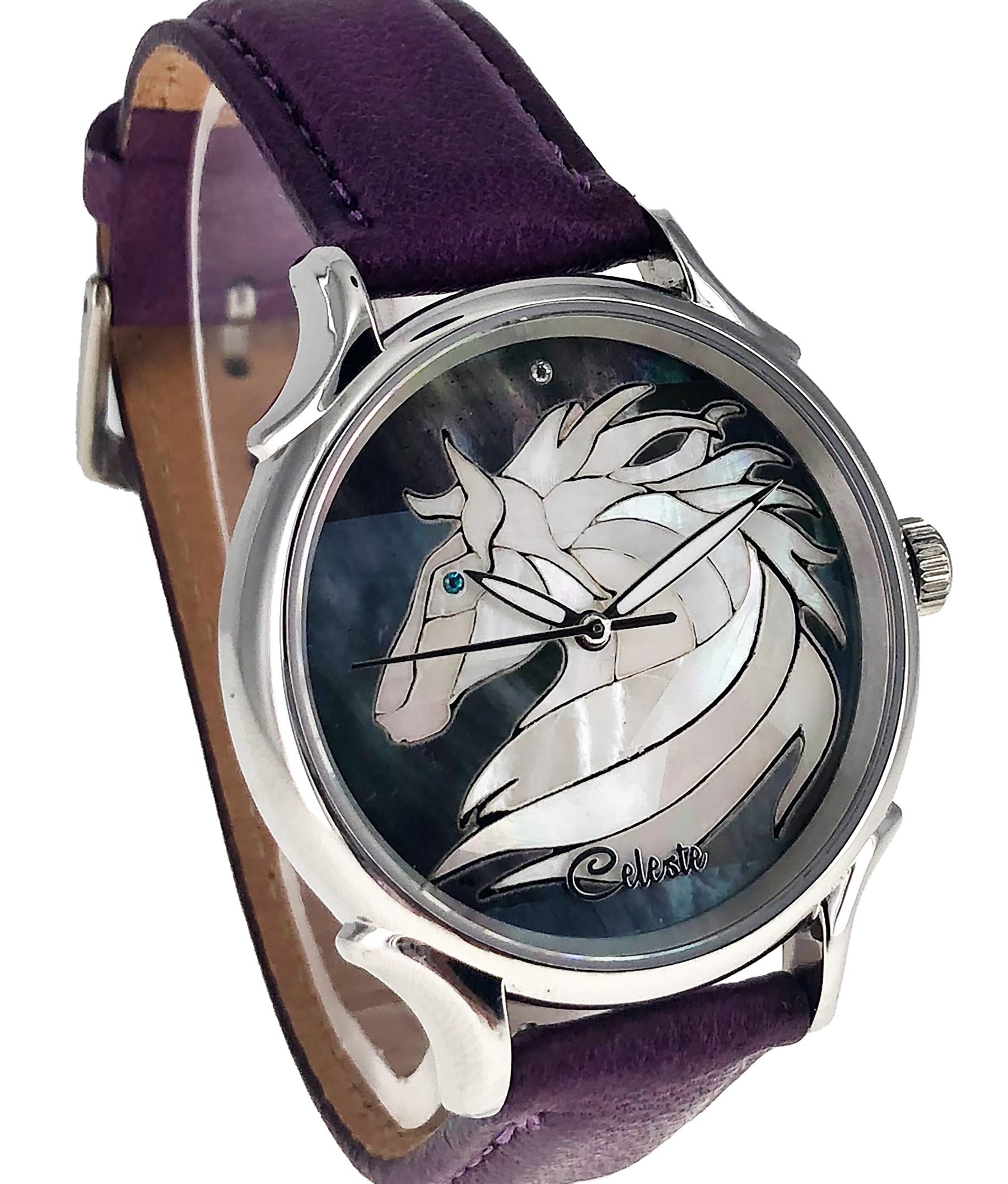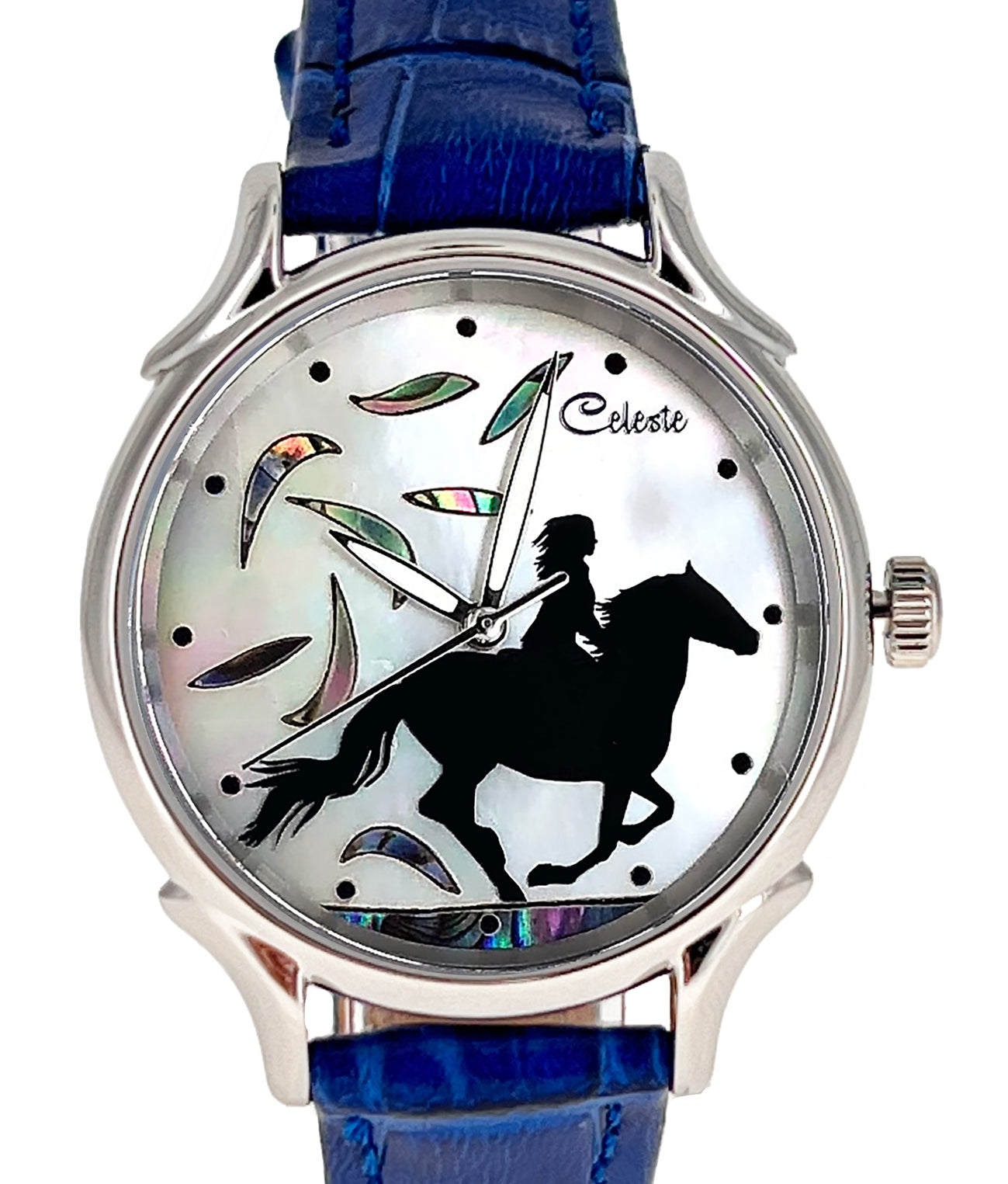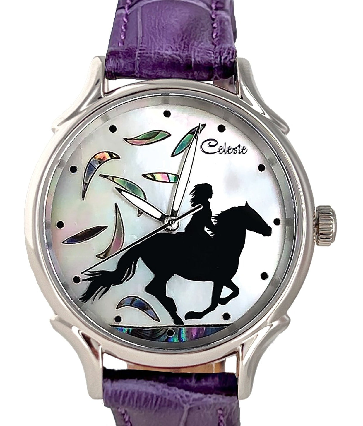 This collection brings together five designs featuring horse dials created with hand-inlaid shell and cloisonné enamel. Created by Celeste Watch Company and enamel artist Merry-Lee Rae, each dial captures movement, spirit, and dimensional detail.