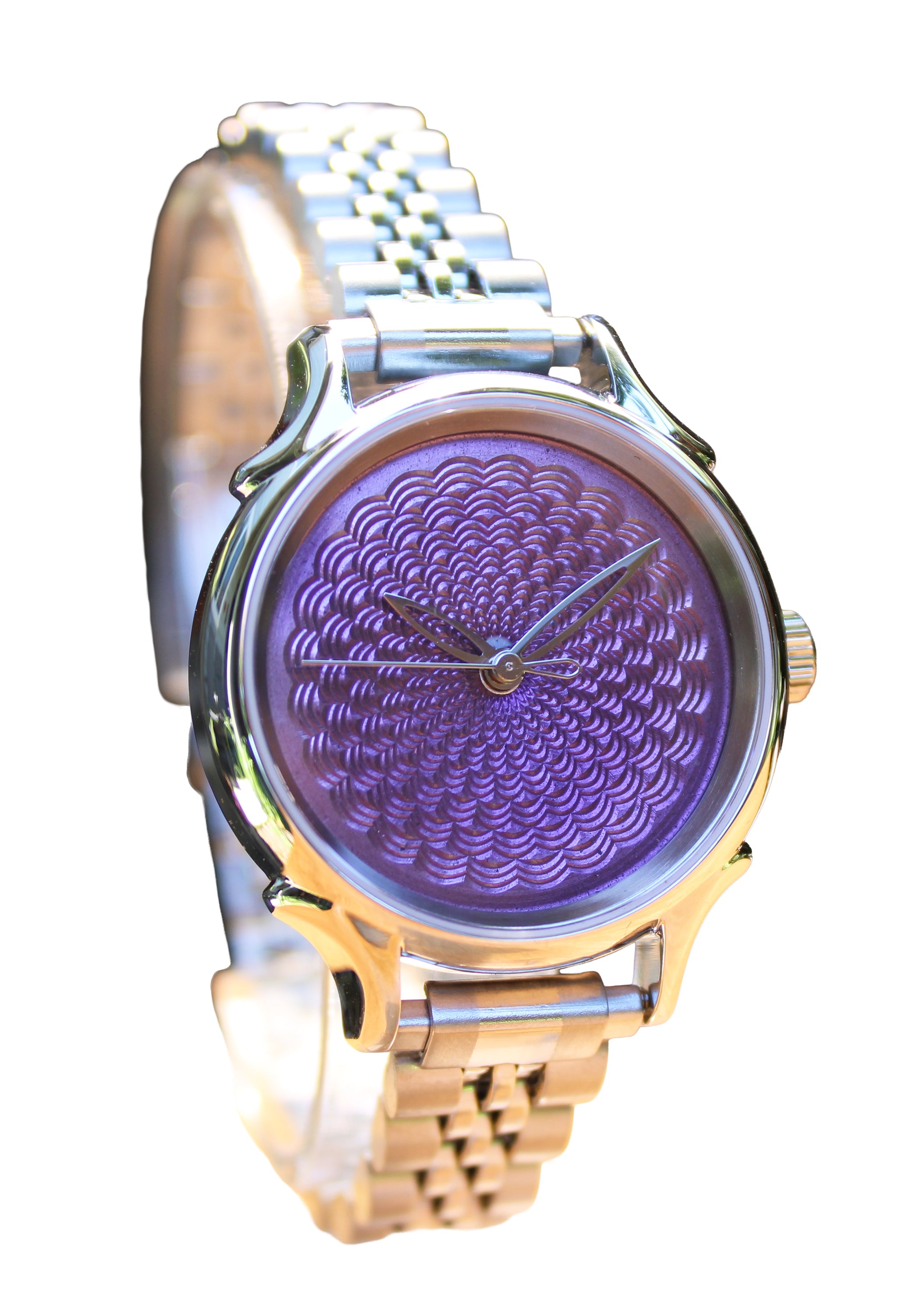 Hand Turned Enamel Guilloché - Summer Grape by Rebecca Montgomery - 32mm Quartz