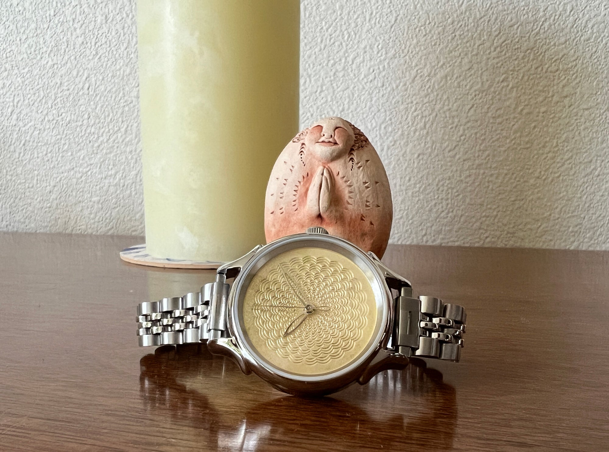 Introducing our exquisite Honey Glow hand-turned and enameled guilloché timepiece.