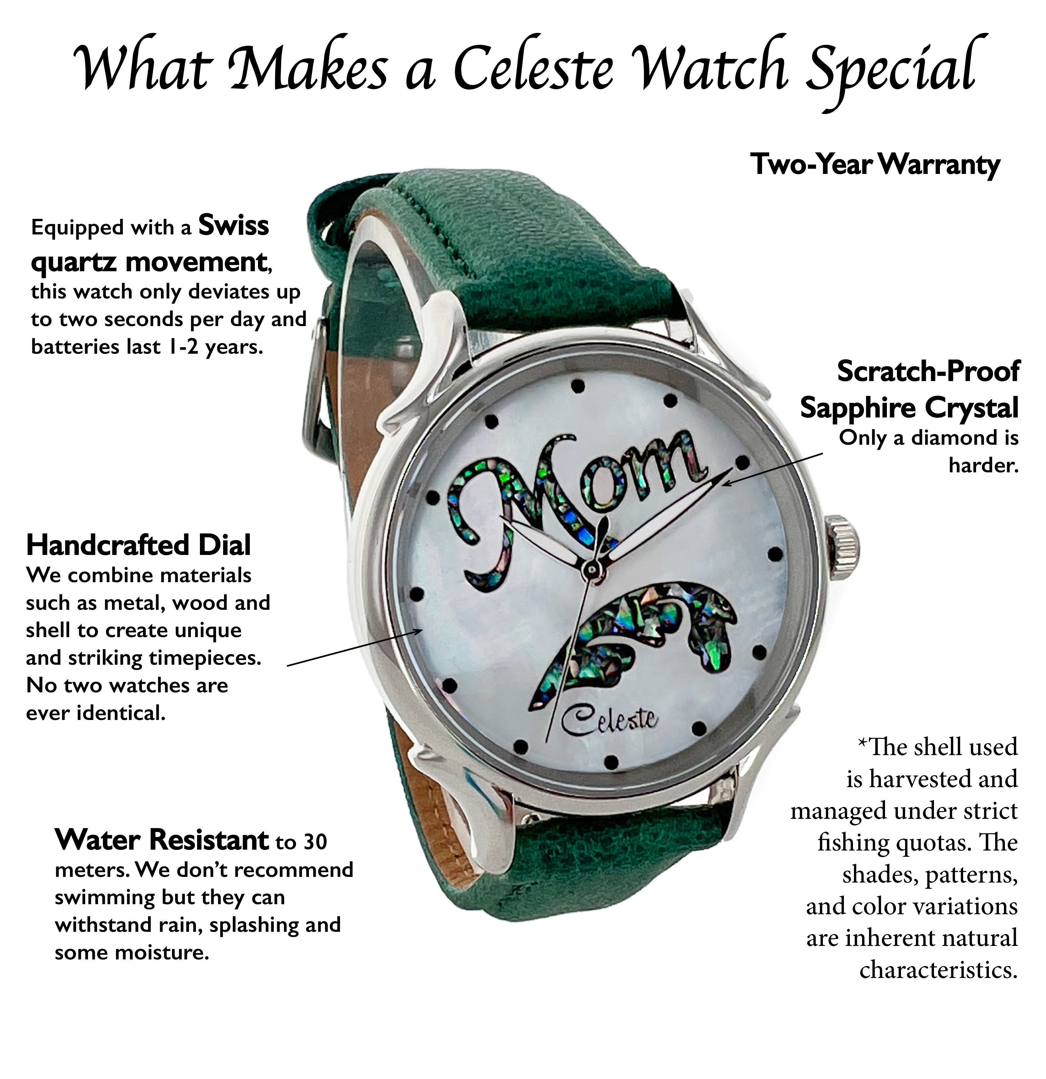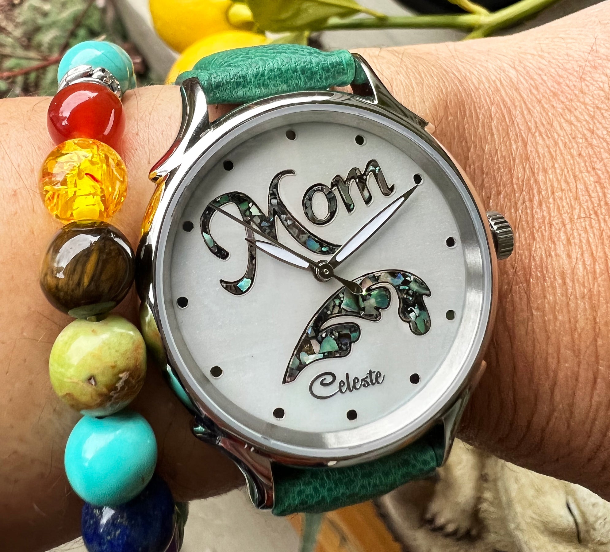 - Every watch dial is handcrafted in our studio in Oregon. Dials are primarily abalone shell and/or Mother of Pearl inlays but many also contain wood and metal pieces.