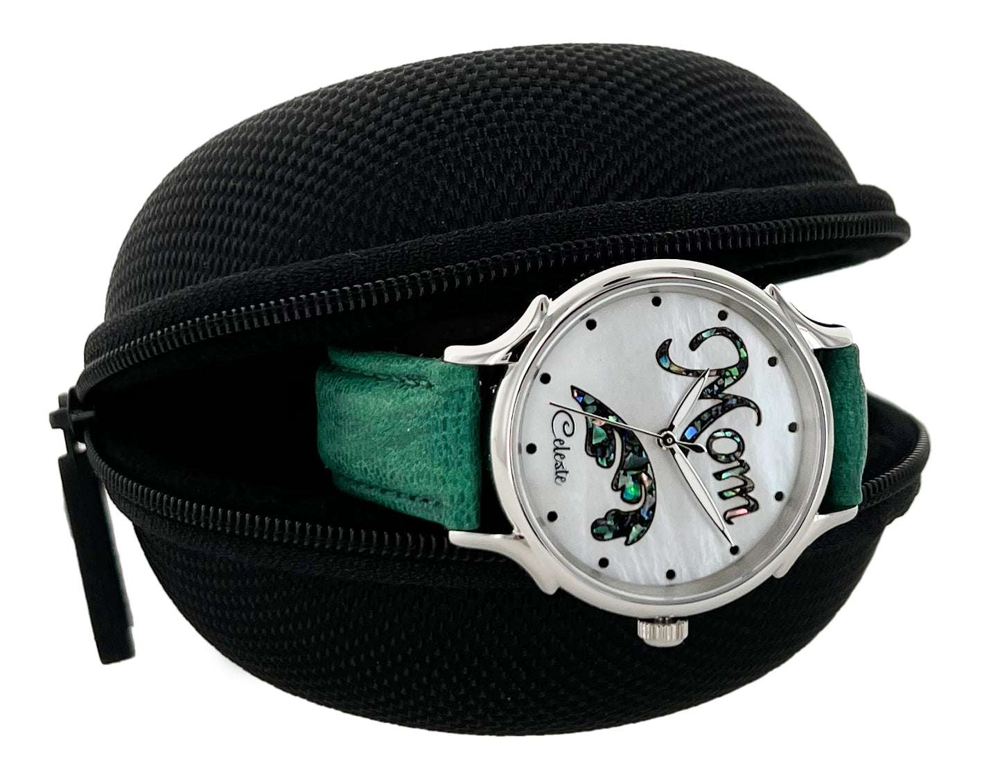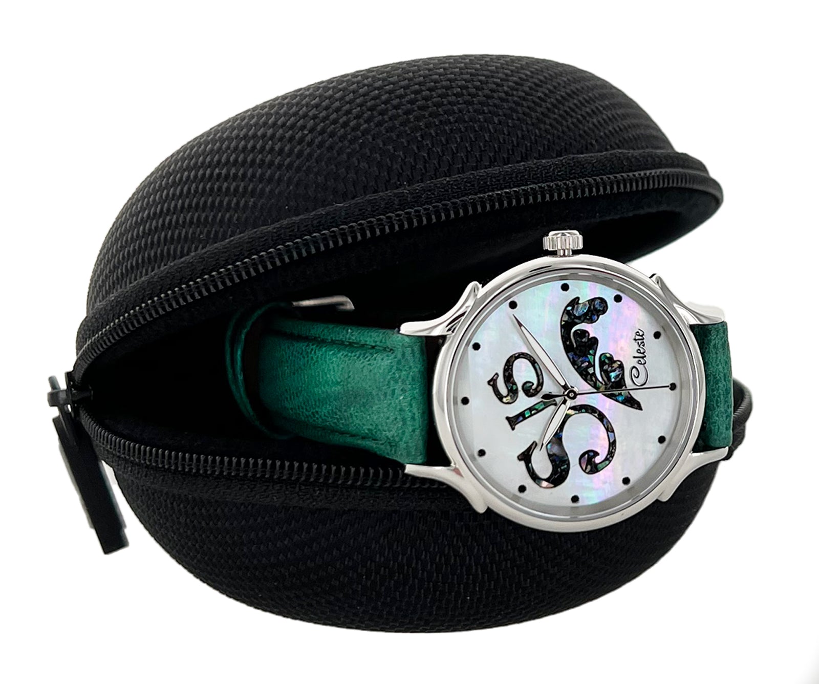- Every Celeste watch comes with its very own travel friendly case! Perfect for storage and shipping, your watch is snuggly nestled in plush felt, protected from drops, knocks, and bangs.