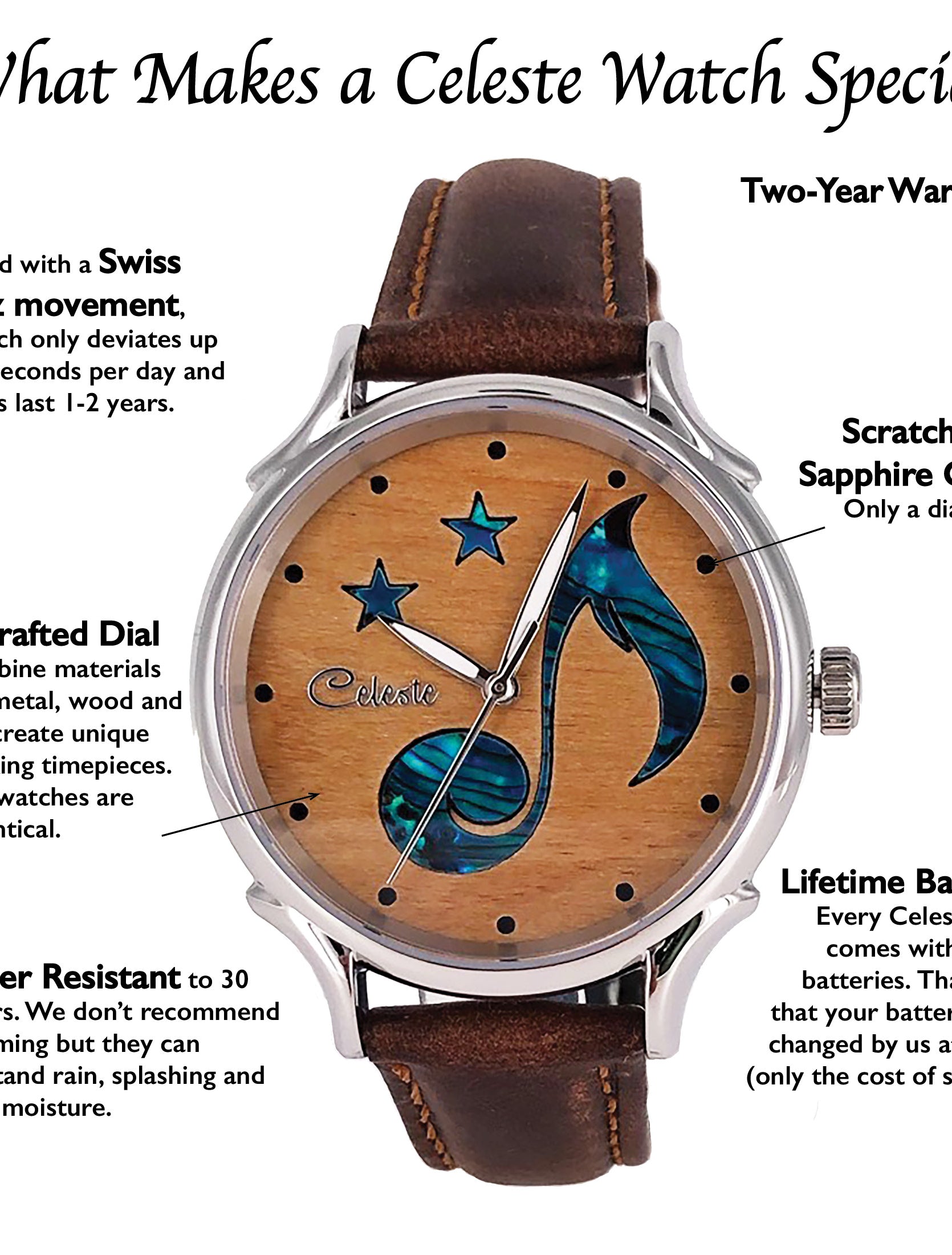 Crafted with the same attention to material and composition found throughout the Celeste Watch Company collections, these watches invite the wearer to choose a design that resonates.