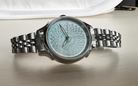 After the pattern has been engraved on the dial, a delicate enamel finish is carefully applied to enhance the beauty of the design, adding a radiant and smooth luster that reflects and bounces light beautifully.