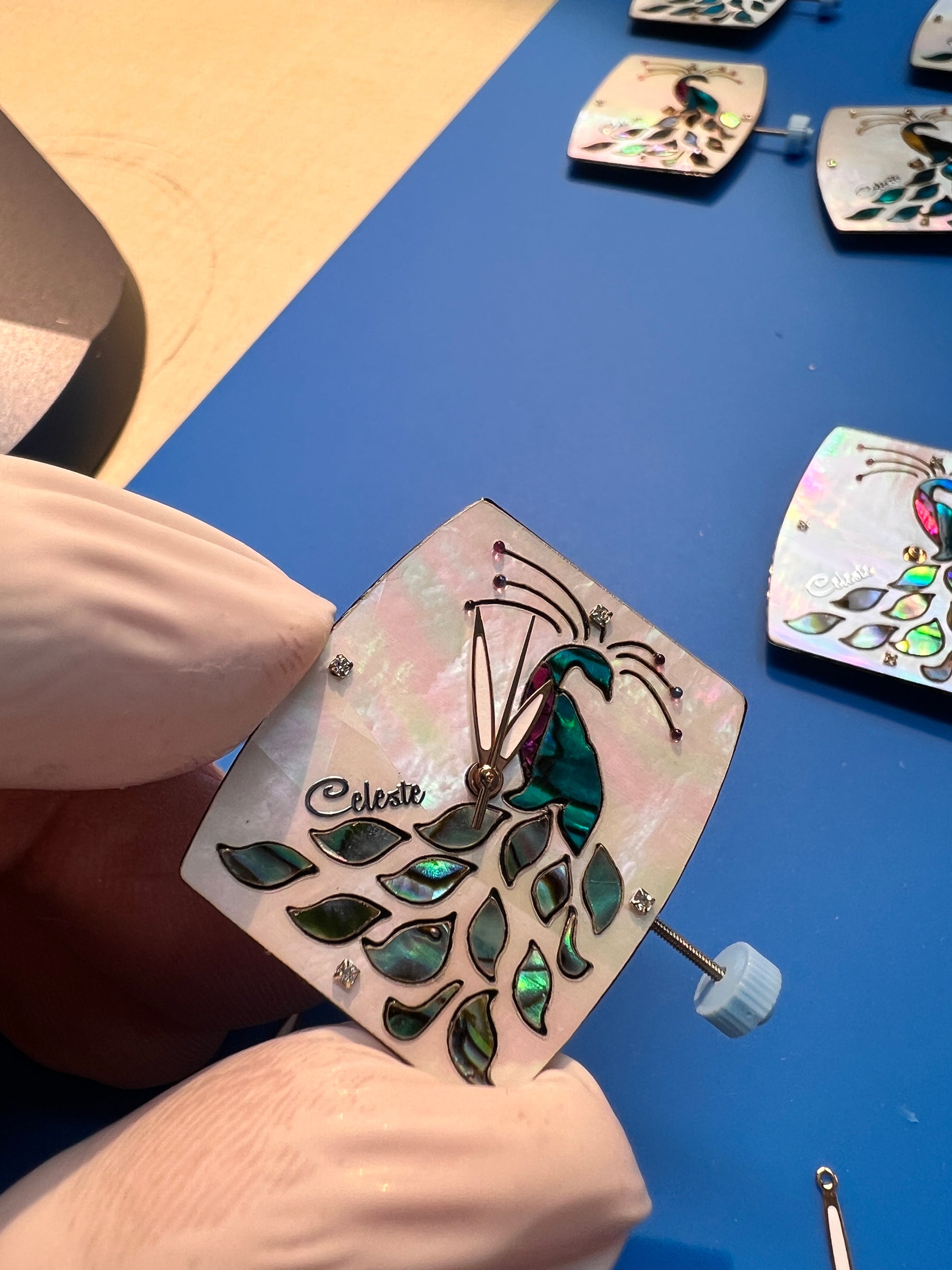 In a quiet studio in Springfield, Oregon, where the light dances across a table strewn with iridescent fragments, we craft time itself. Every watch dial tells a story that begins with the ocean, its colors and luminescence, captured in slivers of abalone shell and mother of pearl.